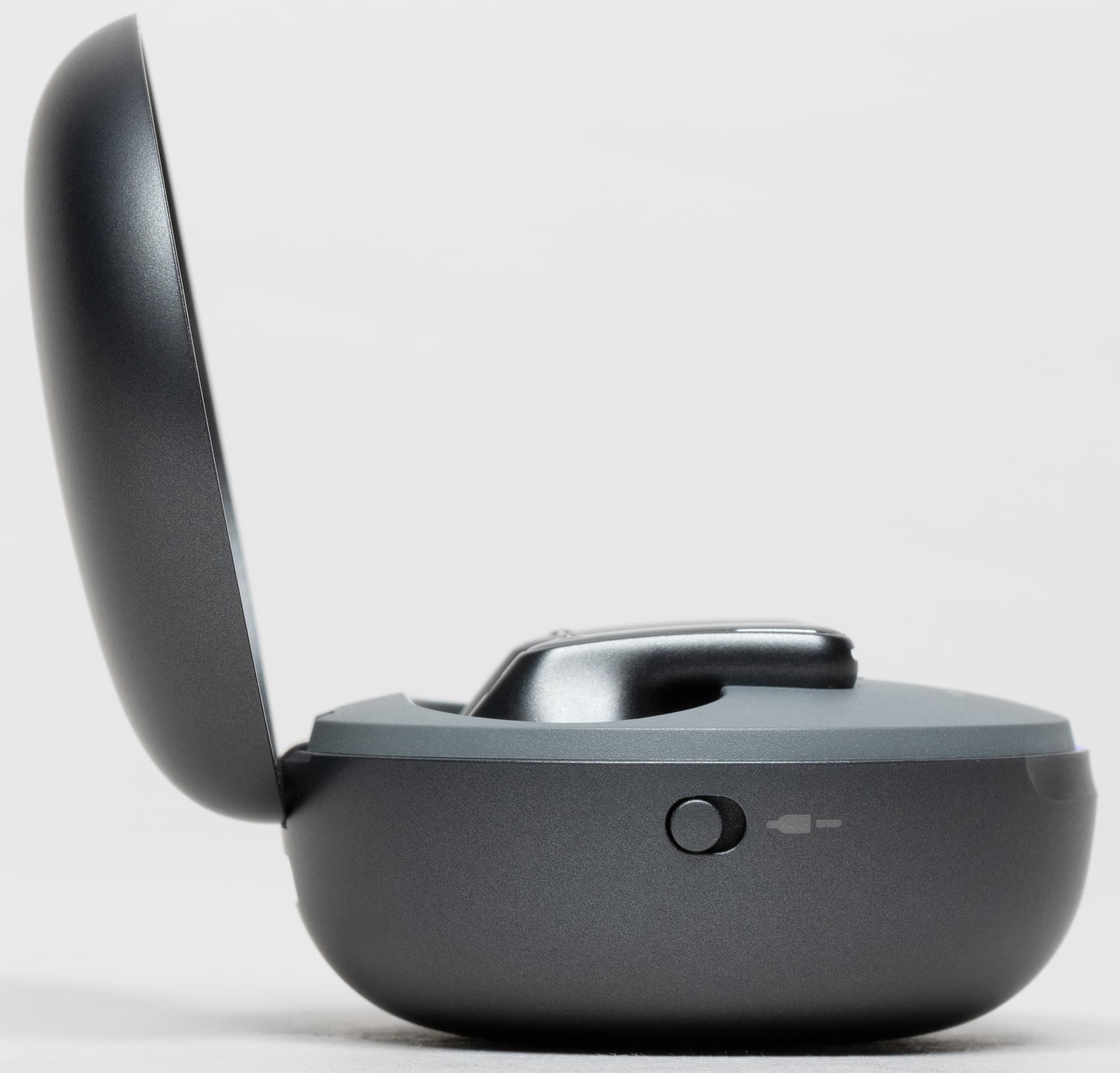 Крышка открывается с хорошо подобранным небольшим усилием. Примерно на середине пути в обе стороны срабатывает доводчик. Работает он очень деликатно, закрывается крышка мягко и с приятным звуком. Достать наушники из кейса легко — достаточно сдвинуть нижнюю часть немного вбок, после чего они сами «выскакивают» из своих слотов. При этом удерживаются внутри они хорошо — не издают ни звука, даже если специально потрясти кейс.