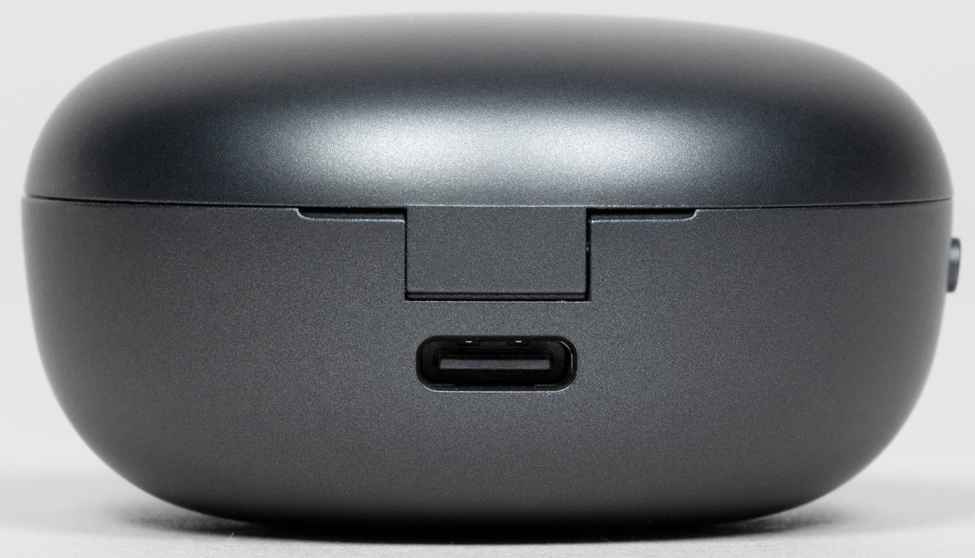 На задней панели размещен порт USB Type C для зарядки. Выше него видна петля, обеспечивающая открытие крышки.