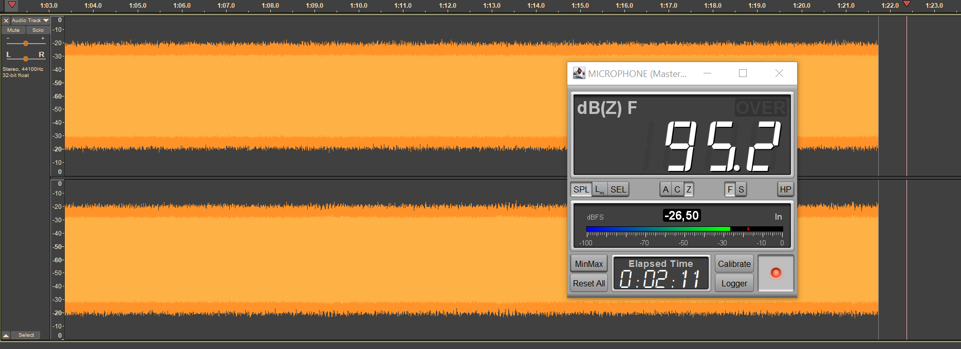 Производитель анонсировал до 10 часов работы наушников в режиме прослушивания музыки — для TWS-гарнитуры это очень солидная цифра, которую особенно интересно было проверить. Вкратце напомним нашу методику тестирования автономности беспроводных наушников. Безопасным уровнем звукового давления при прослушивании музыки считается 75 дБ, но на практике большинство слушателей предпочитает уровень 90-100 дБ. Мы транслируем в наушники белый шум, фиксируя уровень SPL в районе 95 дБ, сразу после старта воспроизведения запускаем запись сигнала с измерительного стенда — по длине получившегося трека легко понять, сколько проработал каждый из наушников.