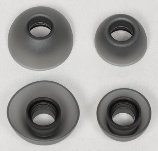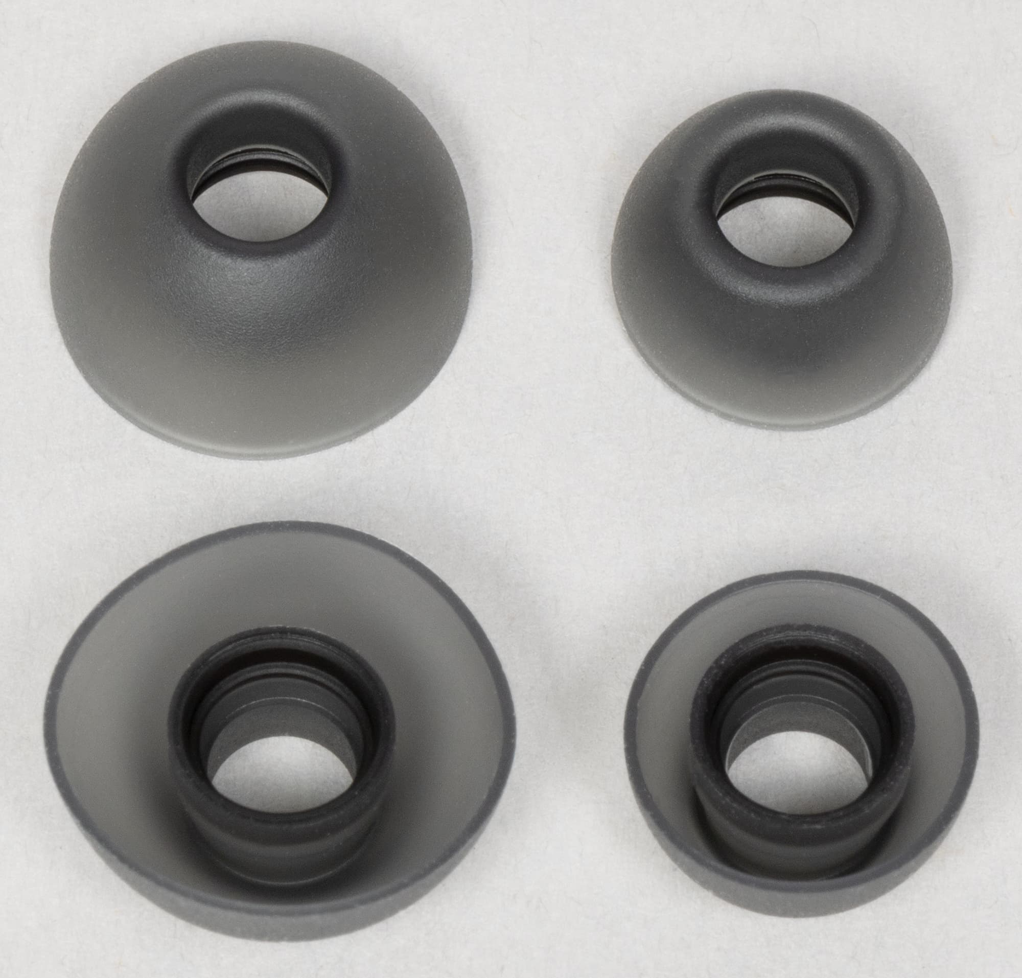 Насадок в комплекте три пары, одна установлена по умолчанию. Производитель делает особый акцент на том, что выполнены они из «медицинского силикона» — гипоаллергенного и в целом самого подходящего. Честно говоря, случаев аллергии от силиконовых вкладышей мы не помним, но амбушюры на ощупь приятные, в использовании вполне удобны — это главное.