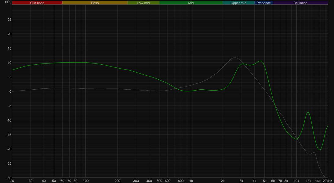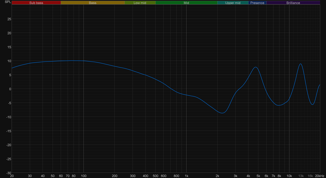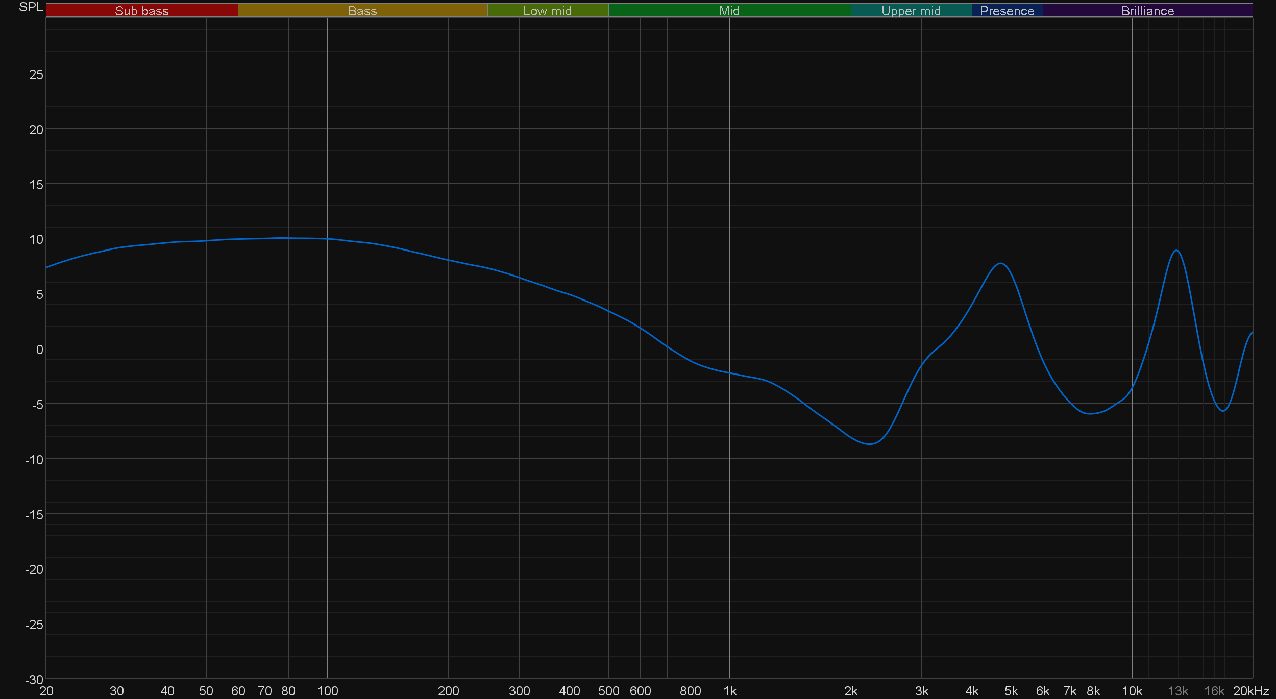 Ну и вот в таком виде график отлично иллюстрирует наши субъективные впечатления от прослушивания наушников. Для гейминга подобный звуковой профиль подойдет отлично, что же касается музыки — тут дело вкуса. Любители «качающих» басов, хип-хопа и танцевальной электроники могут остаться довольны, например.