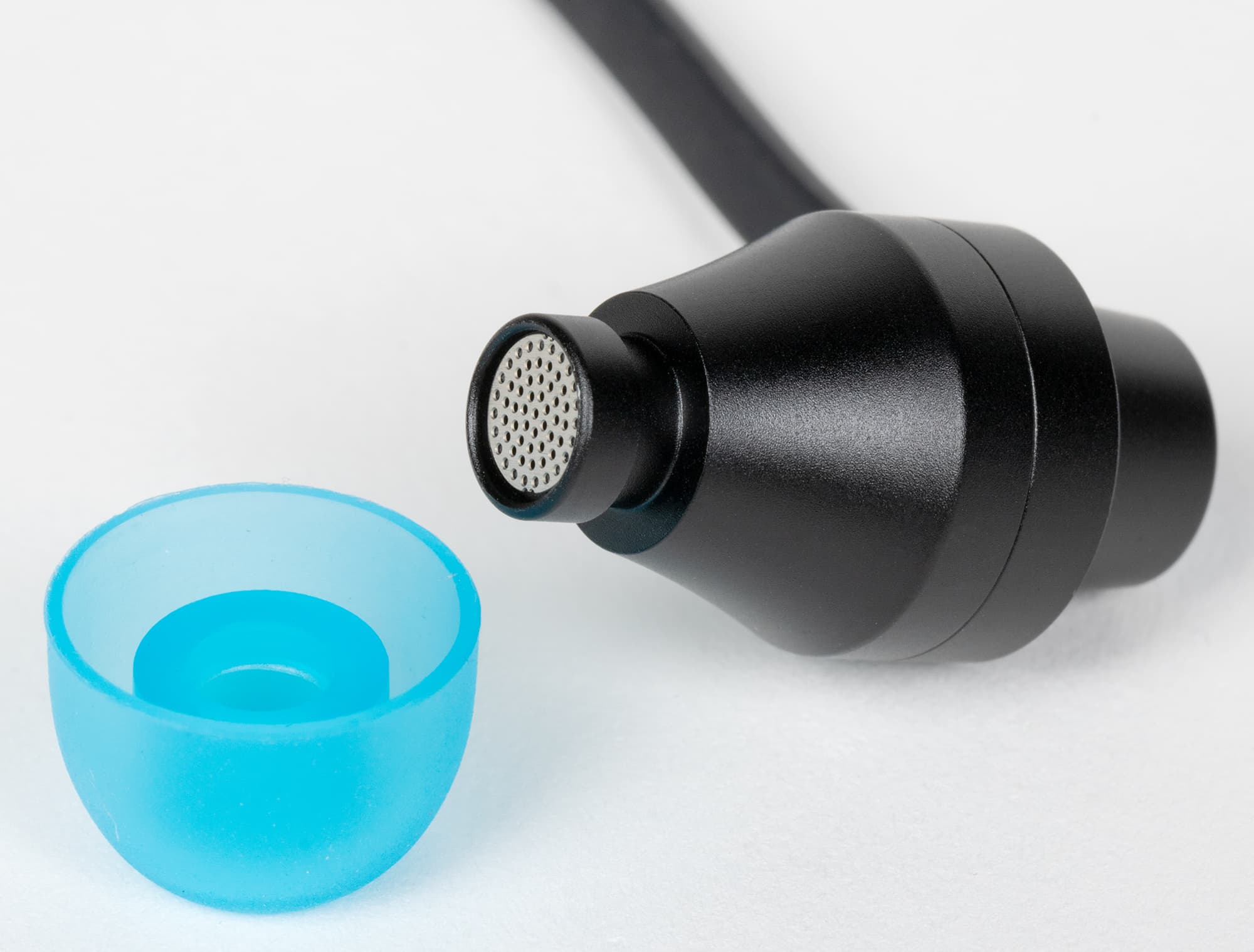 Силиконовые насадки надежно удерживаются за счет заметного углубления на носике звуковода, но при этом легко снимаются и ставятся на место.