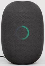 На верхней части корпуса расположена сенсорная панель, служащая для управления устройством. О ней мы чуть подробнее поговорим ниже. Также на панели размещены небольшой светодиодный индикатор и отверстия 6 микрофонов, служащих для общения с голосовым помощником.