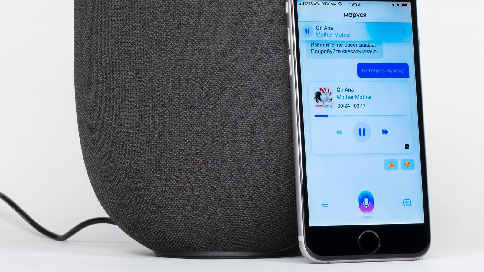 Голосовую помощницу «Яндекса» пользователи периодически упрекали в слишком уж резких шутках — мол, иногда прямо на грани фола. Ответы Маруси менее разнообразны, но зато максимально корректны и лояльны к пользователю. Одна из основных функций колонки — это, конечно, воспроизведение музыки. В качестве основного и единственного потокового сервиса используется «ВКонтакте», он же Boom. Не имея оплаченного аккаунта в этом сервисе, пользоваться колонкой особого смысла и нет: в ответ на любую просьбу поставить музыку Маруся напоминает, что нужно заплатить за доступ, и кидает push-уведомление на подключенный гаджет. К счастью, в комплекте идет полугодовая подписка.