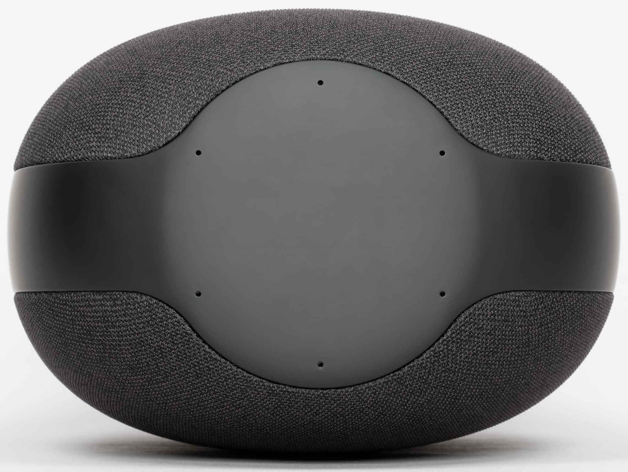 Внешним оформлением колонка Mail.ru не похожа ни на кого из «коллег», формой она вполне оправдывает название «Капсула». Внешняя часть корпуса почти полностью обтянута тканью, на передней панели расположен крупный круговой индикатор. Выглядит устройство оригинально и интересно, но при этом не привлекает к себе лишнего внимания и будет вполне уместно практически в любом интерьере. Вариантов расцветки анонсировано два: черный и светло-серый, у нас на тесте был первый.