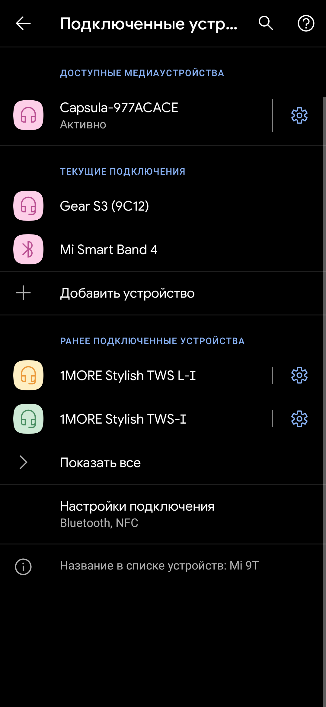 В качестве основного источника музыки явно предполагается аккаунт пользователя «ВКонтакте» с соответствующей подпиской, однако «Капсула» вполне способна выступать и в качестве Bluetooth-колонки. Причем при воспроизведении музыки через беспроводное подключение пользователь не теряет возможности обратиться к голосовому помощнику. Это выгодно отличает «Капсулу» от «Яндекс.Станции», которая при включении Bluetooth превращается из «умной» колонки в самую обыкновенную. Процесс сопряжения стандартен: нашли в соответствующем меню, нажали, подключили. По умолчанию используется кодек SBC.
