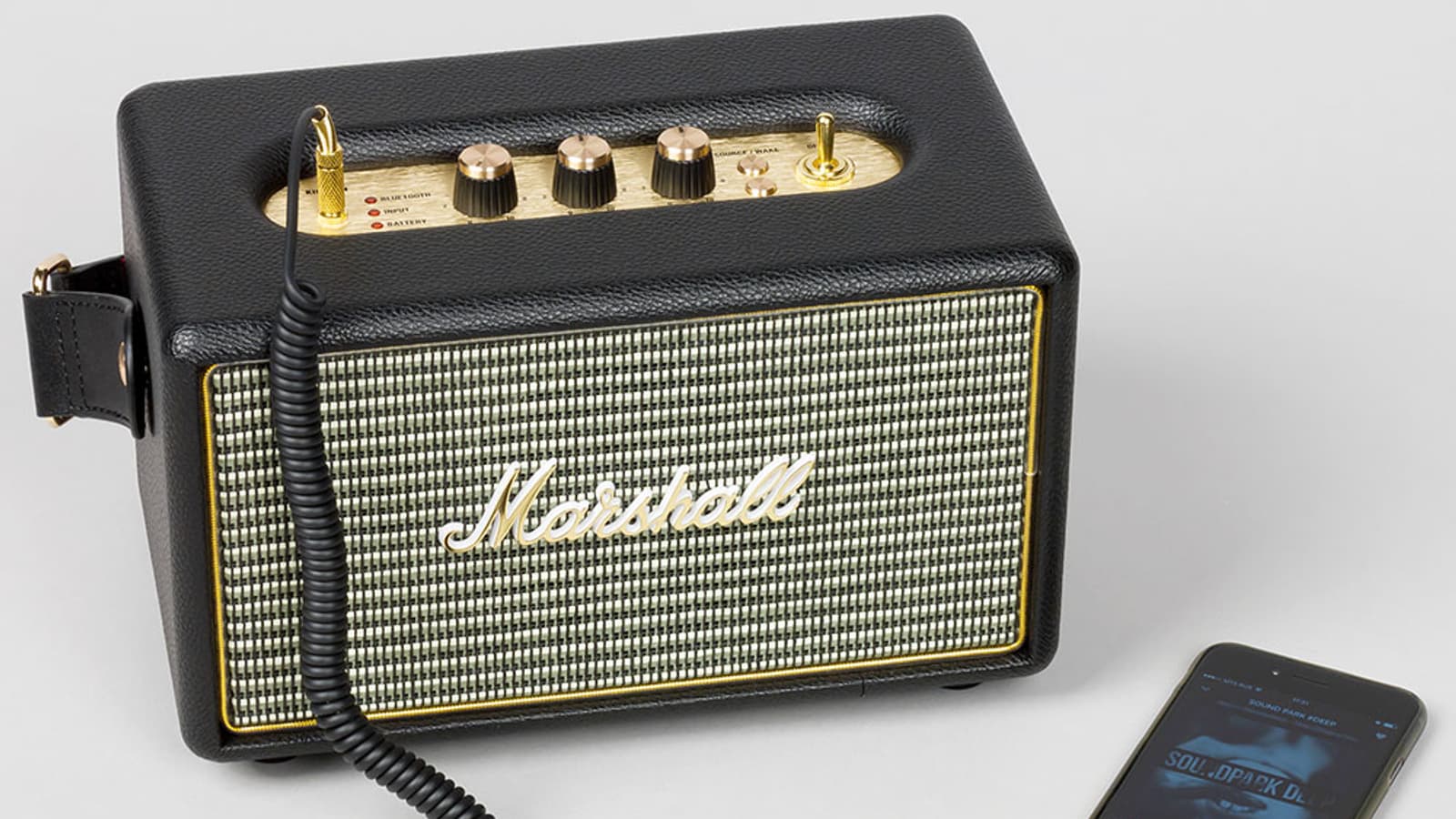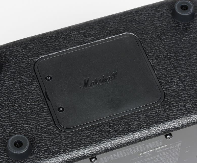 Человека, не понаслышке знакомого с Marshall Class 5 (Kilburn точь-в-точь напоминает именно эту легендарную серию), колонка в первые мгновения приводит в восторг — даже включать не обязательно. Значительную долю близких к музыке людей эта колонка способна покорить исключительно «аккуратно портированным» дизайном. Внимание к мелочам, стилистика, приятные регулировки — практически все компоненты удалось удержать на достойном уровне. Тем необычней, на фоне остальных достоинств, выглядит откровенно простенький на вид ремень из кожзаменителя, неаккуратный шов на стыке виниловой пленки и пластиковый логотип Marshall, покрытый вульгарно-блестящей позолотой. Этим недоразумениям, безусловно, не удастся испортить удачный и стильный образ устройства, но несколько неаккуратных хрипов «клипующего» сигнала в записи стеклянного звука нэкового сингл-датчика все же останется.