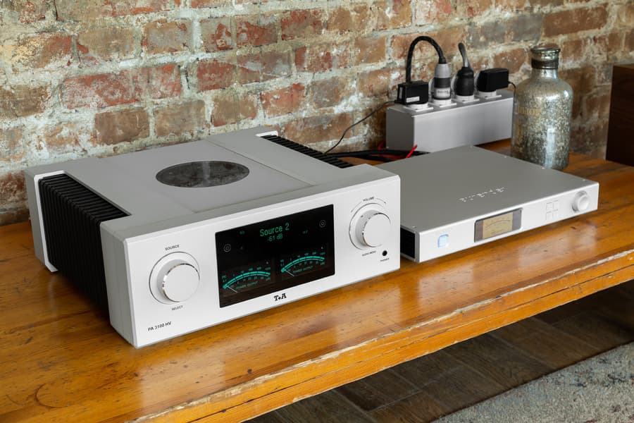 Ну а усилитель, что называется, «топовый» — пусть уже не самая новая, но все еще одна из лучших моделей немецкого производителя T+A из легендарной линейки HV (то бишь High Viltage). Как раз благодаря высокому питающему напряжению по замыслу разработчиков все представители HV-серии отличаются максимальной линейностью и широким динамическим диапазоном. В общем, вполне соответствующий по классу тестируемой акустике прибор, который совершенно точно в силах ее «раскачать» и явно не станет причиной каких-либо искажений или неточностей в звучании — а нам только того и надо.