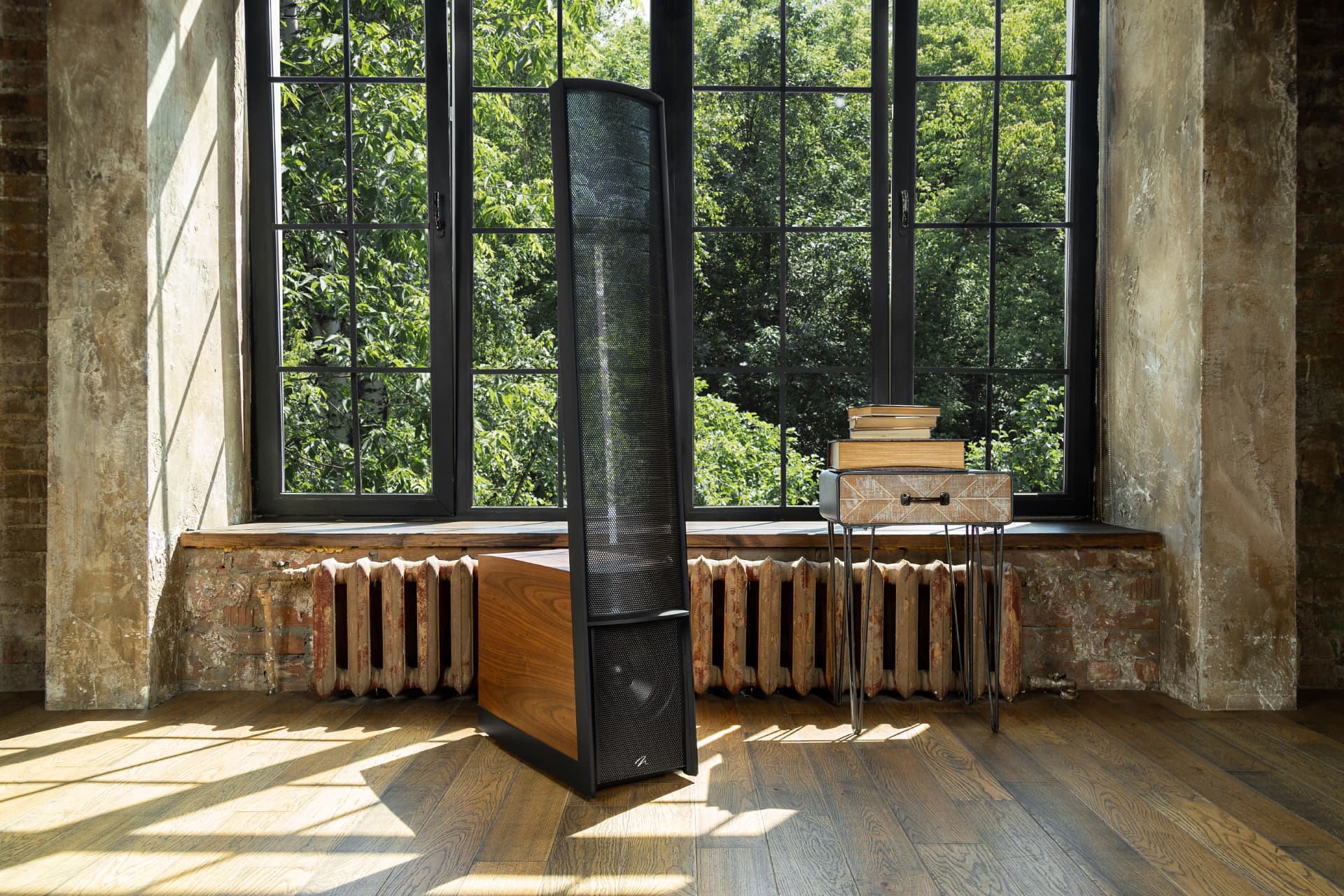 Панели немного наклонены назад, чтобы снизить вероятность появления нежелательных отражений звука от пола. Ну и чуть изогнуты для расширения диаграммы направленности излучения — вся та же хорошо знакомая нам технология CLS (Curvilinear Line Source) в действии.