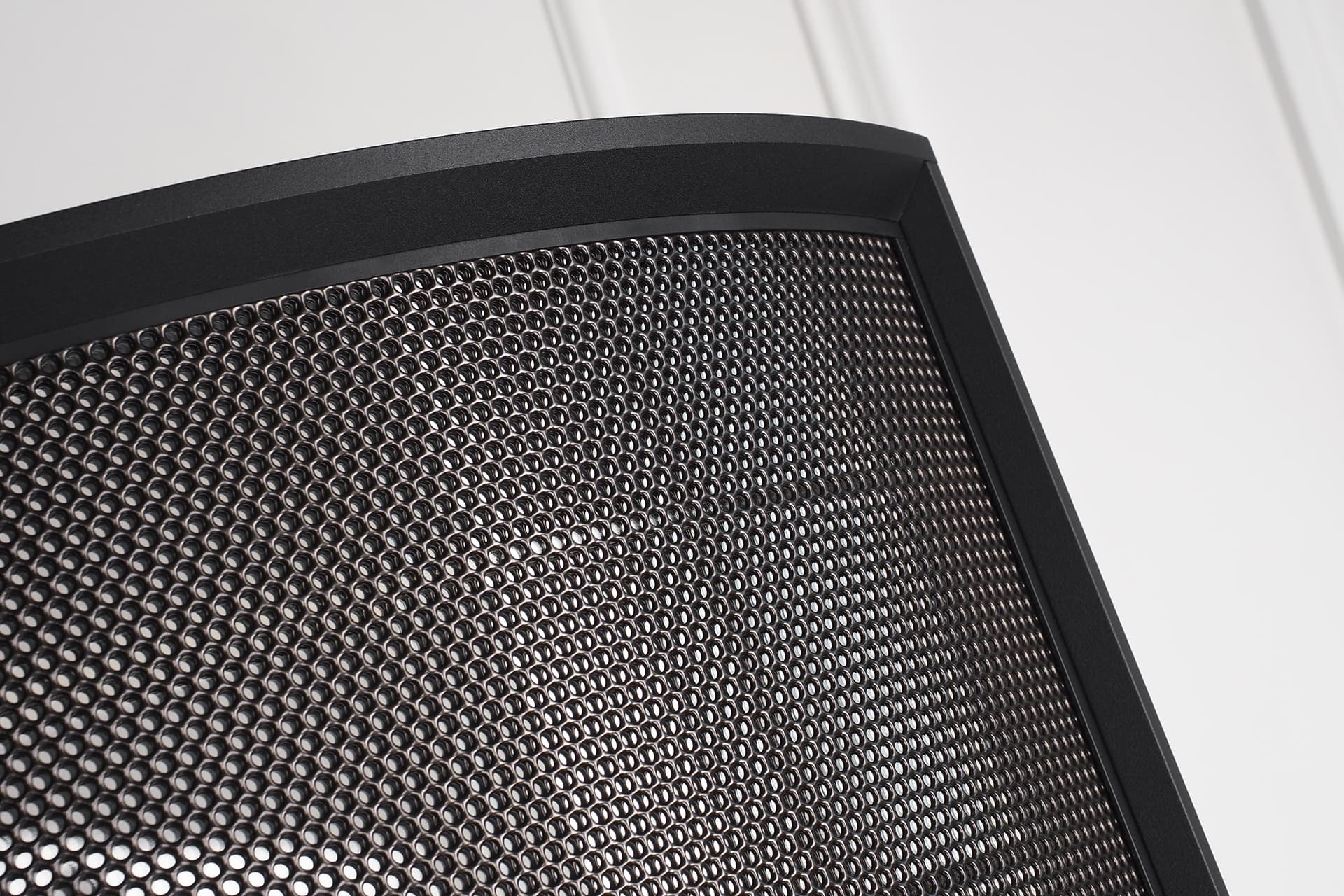 Нередко без защитных сеток колонки выглядят интереснее, чем с ними. В данном случае это не работает, сетка прекрасно сочетается с перфорированной панелью электростатического драйвера, без нее акустика выглядит как-то менее эффектно. Хотя тут дело вкуса, конечно.