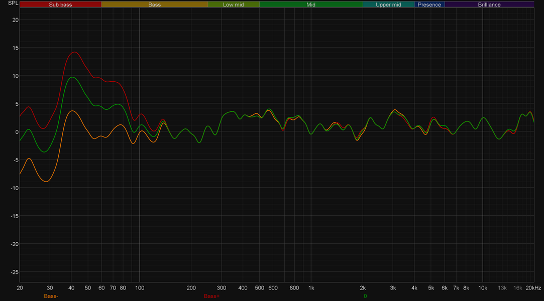 Но акцент на низкочастотной составляющей тут показался нам излишним, потому мы немного снизили его с помощью соответствующего регулятора, а заодно подчеркнули мидбас. И стало вот совсем хорошо. Но еще раз отметим, что универсальных рецептов тут нет — нужно экспериментировать, ориентируясь на особенности помещения и собственный вкус.