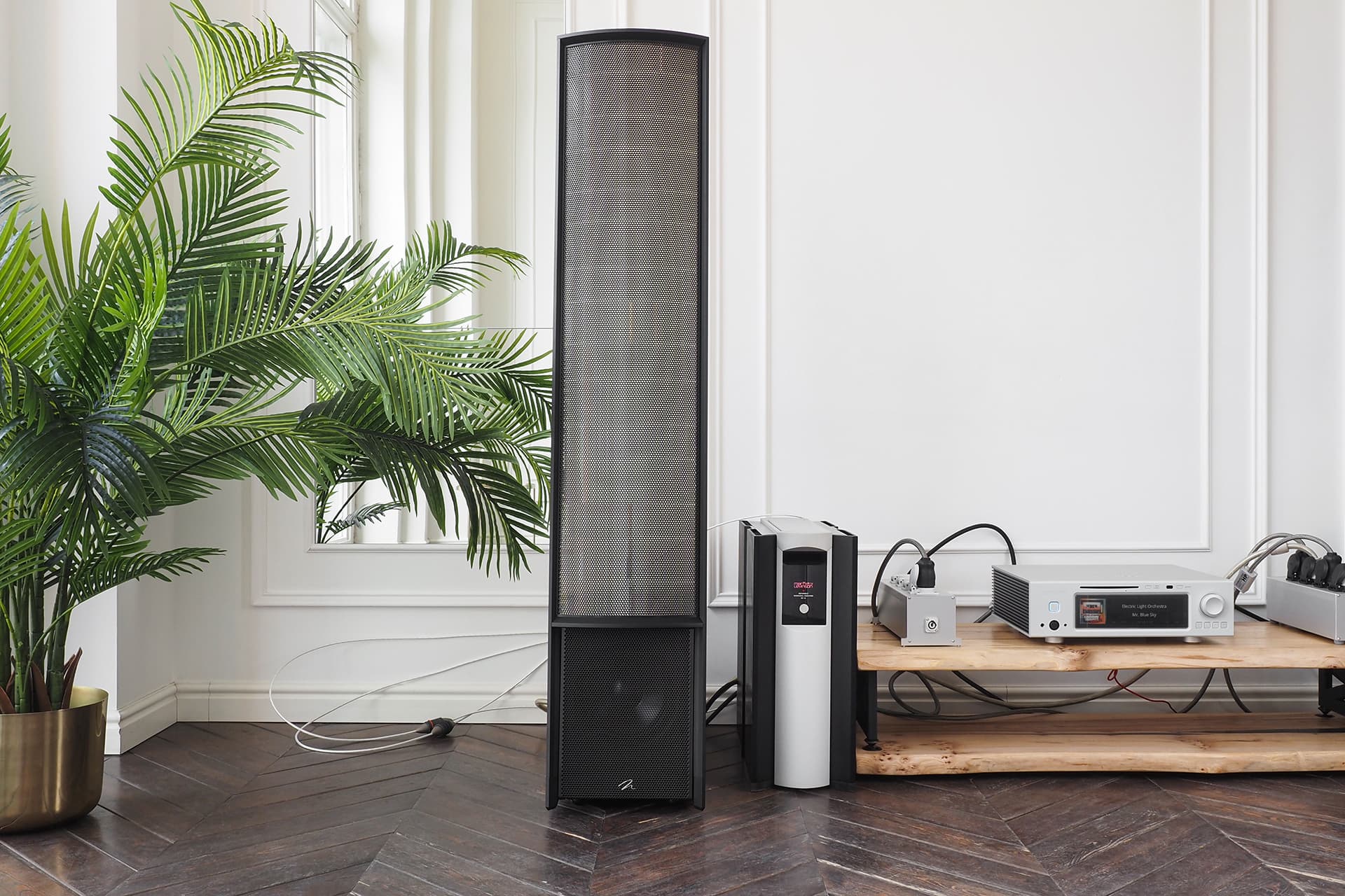 Плеер Aurender A30 был выбран как заведомо высококачественный источник с удобным управлением через ПО Aurender Conductor, позволяющий комфортно находить нужные треки и переключаться между ними. Что же касается Mark Levinson No. 53 «аудиофильской дочки» в составе корпорации Harman International Industries, то тут прибор выбран, что называется, с запасом — и по мощности, и по качеству. Он способен выдавать до 1000 Вт на 4 Омах, чего в данном случае более чем достаточно. Ну в плане качества… Рассказ обо всем, что сделали разработчики этого референсного и крайне дорогого усилителя, займет несколько абзацев. Не будем даже и пытаться уместить его в несколько фраз, лучше когда-нибудь посвятим ему отдельный обзор.