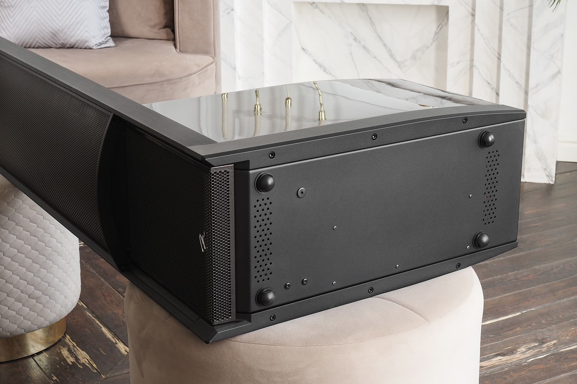 Низкочастотная секция является активной и оснащена двойными 275-ваттными усилителями класса D, управляемыми 24-битным процессором Vojtko DSP, с помощью которого производится настройка уровня низких частот и обеспечивается работа функции ARC — автоматической подстройки под параметры помещения.