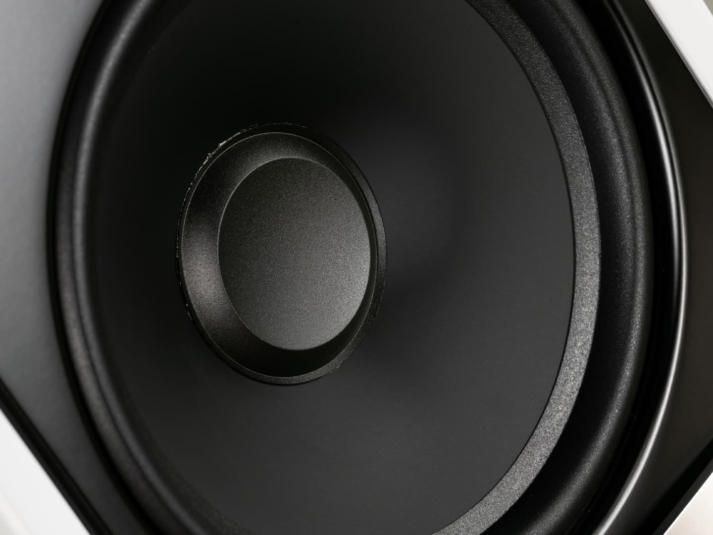 Лицевая сторона тестируемых «полочников» выглядит так, как будто производитель взял Motion 60 XTi и «отпилил» от нее нижнюю часть. И действительно, здесь мы видим тот же динамик диаметром 16,5 см. Однако в напольной модели он находится в закрытом пространстве и отвечает за средние частоты, а в полочной же размещен в камере с фазоинвертором и отрабатывает диапазон от 50 до 2200 Гц.