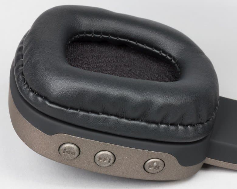 Амбушюры представляют собой трапециевидную подушку из экокожи с мягким наполнителем внутри. Их размер не подразумевает обхвата уха — амбушюры ложатся на ушную раковину. Подобное решение не является самым эргономичным, однако конструкция Microlab T965BT оказалась на редкость удачной: при длительном использовании амбушюры не вызывали дискомфорта.