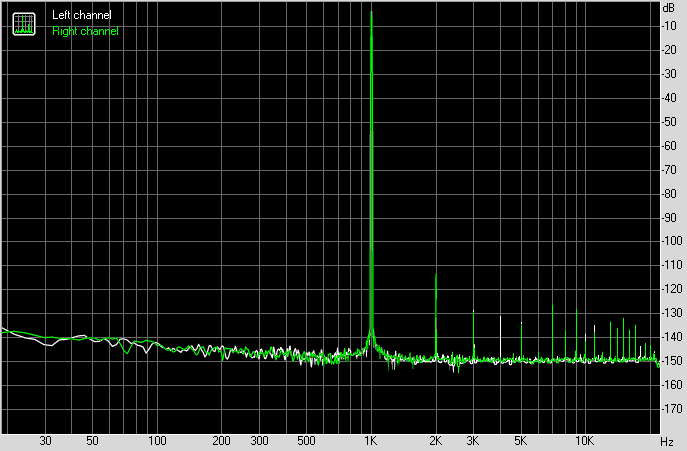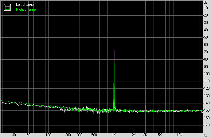 Как и ожидалось, у устройства большой динамический диапазон и низкие искажения. Так как производитель не приводит никаких паспортных данных своего устройства, мы не можем сравнить с ними.