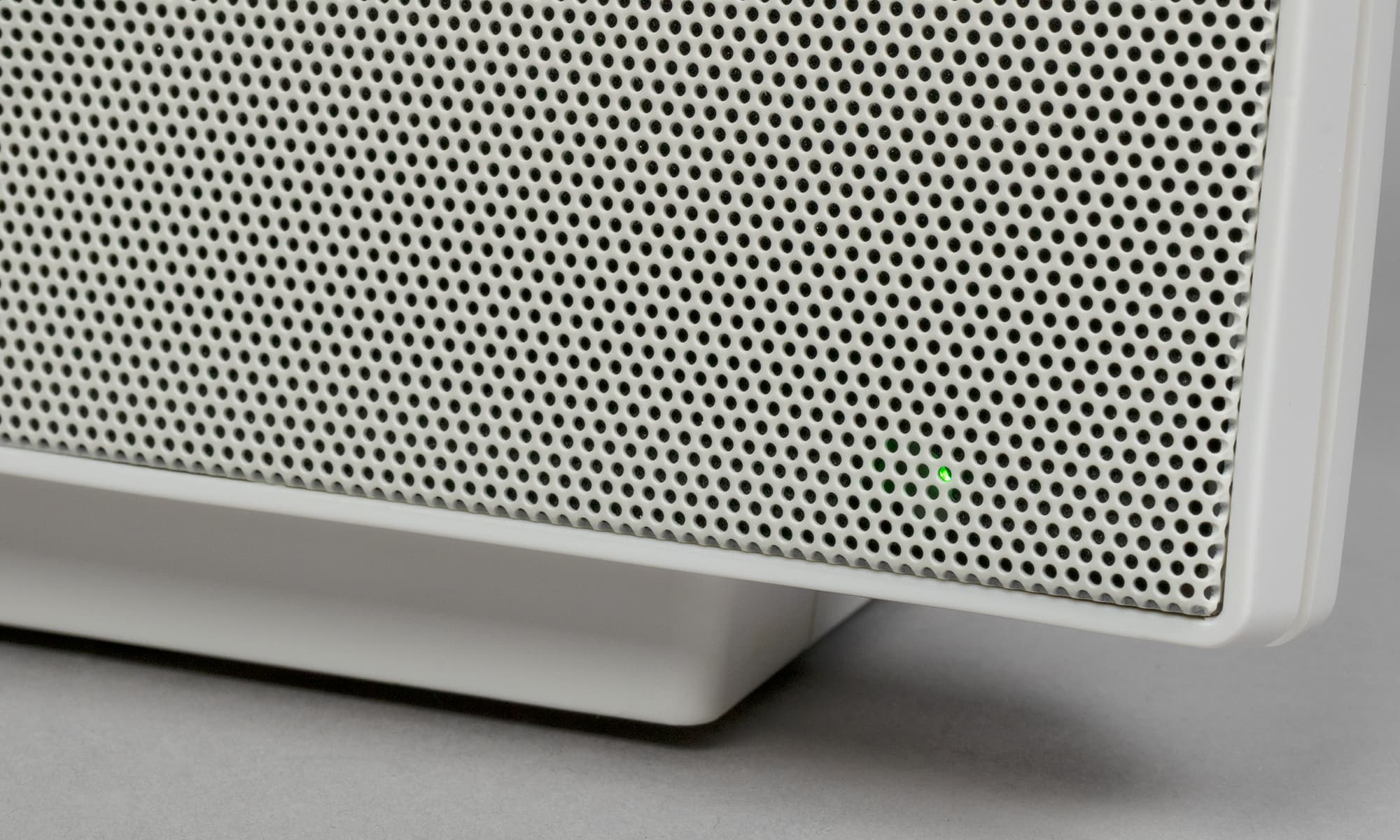 Устройство выпускается в двух вариантах окраски — черном и белом. Мы для тестирования выбрали второй. Корпус у колонки компактный — всего лишь 380×192×105 мм, да и масса невелика — 2,75 кг. Она отлично разместится на небольшой полке, прикроватной тумбе или столе.