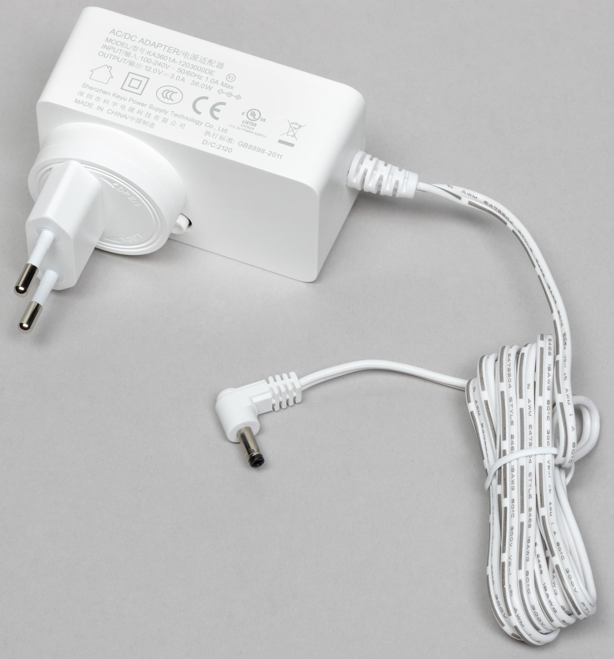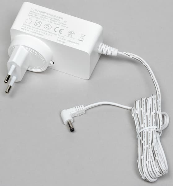 Блок питания компактный, все его параметры можно найти на фото ниже. Вилка съемная, но в комплекте идет только одна — вероятно, в зависимости от страны поставки. Длина кабеля — 180 см.