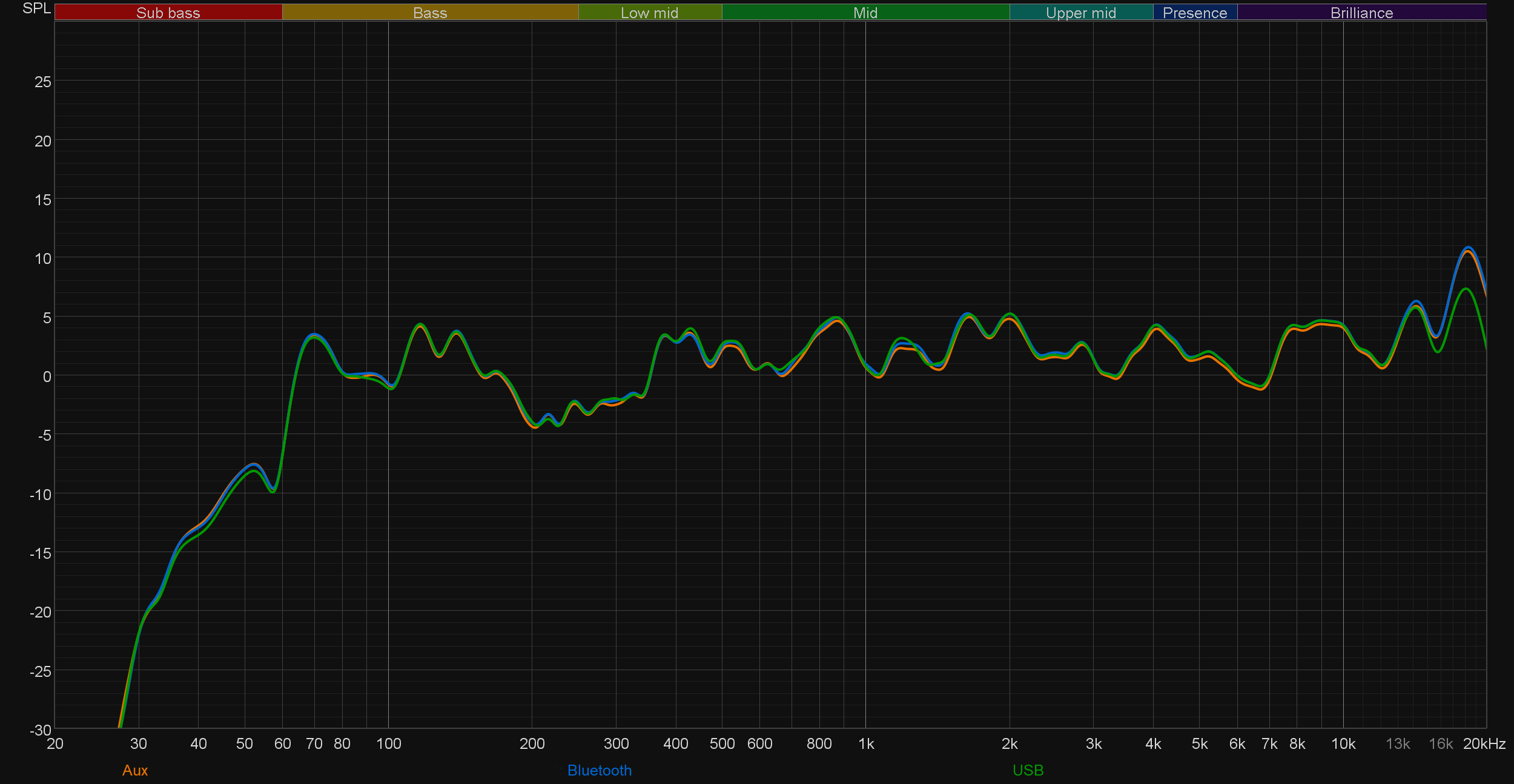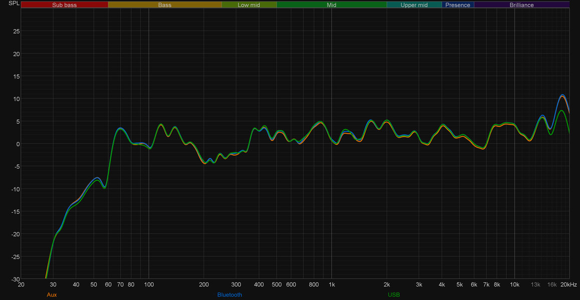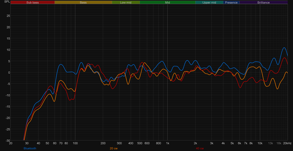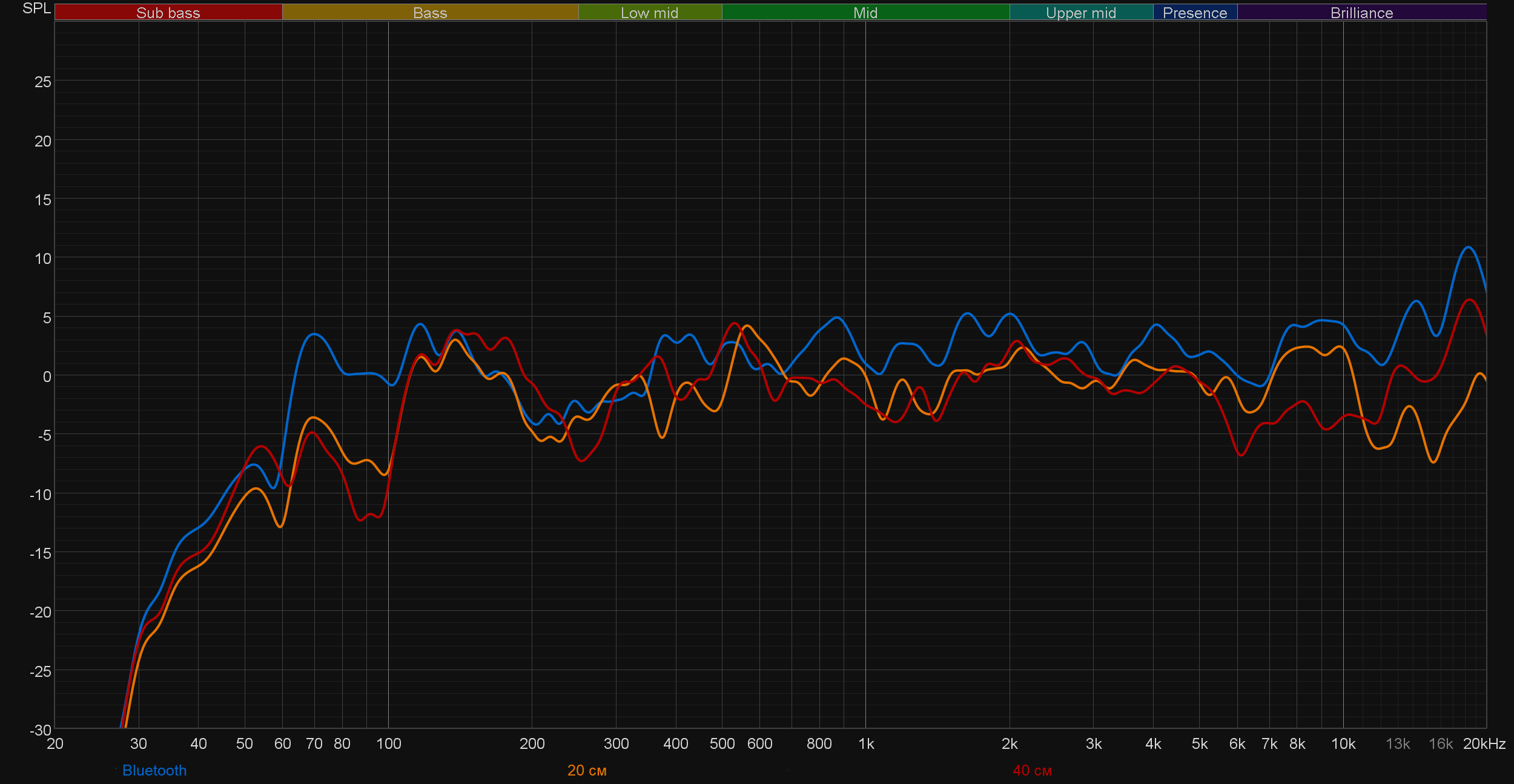 График выше получен при подключении колонки посредством Bluetooth. Посмотрим, не меняется ли АЧХ при смене типа подключения.