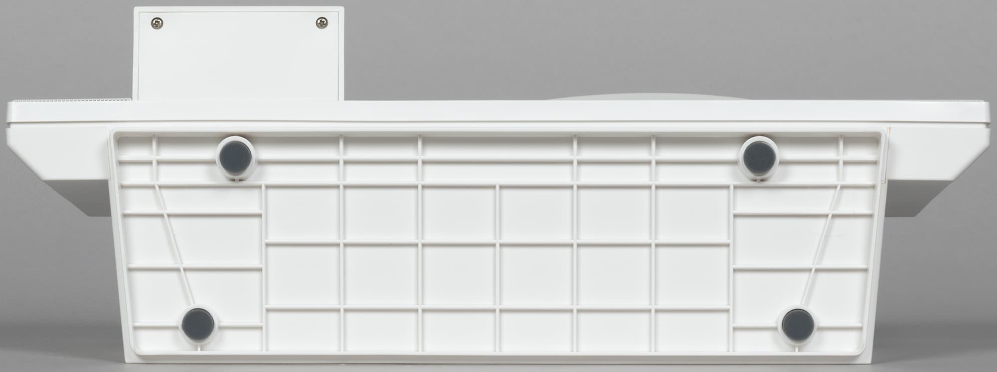 На дне находятся небольшие ножки, обеспечивающие устойчивость колонки. Два винта на панельке под лампами сразу вызвали у нас море любопытства. Но, к сожалению, их демонтаж не приводит ни к чему интересному — крышка дополнительно удерживается какими-то элементами внутри корпуса.