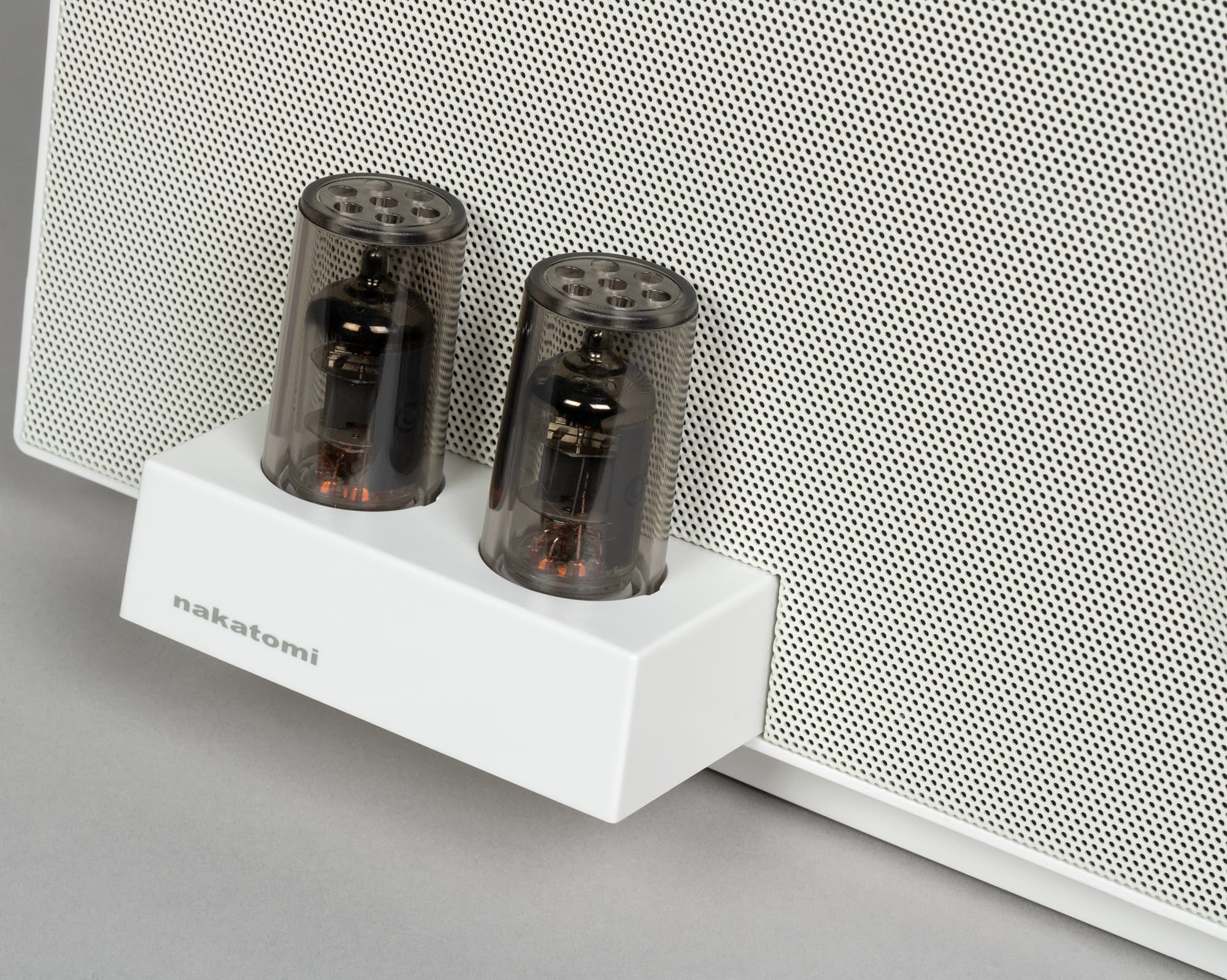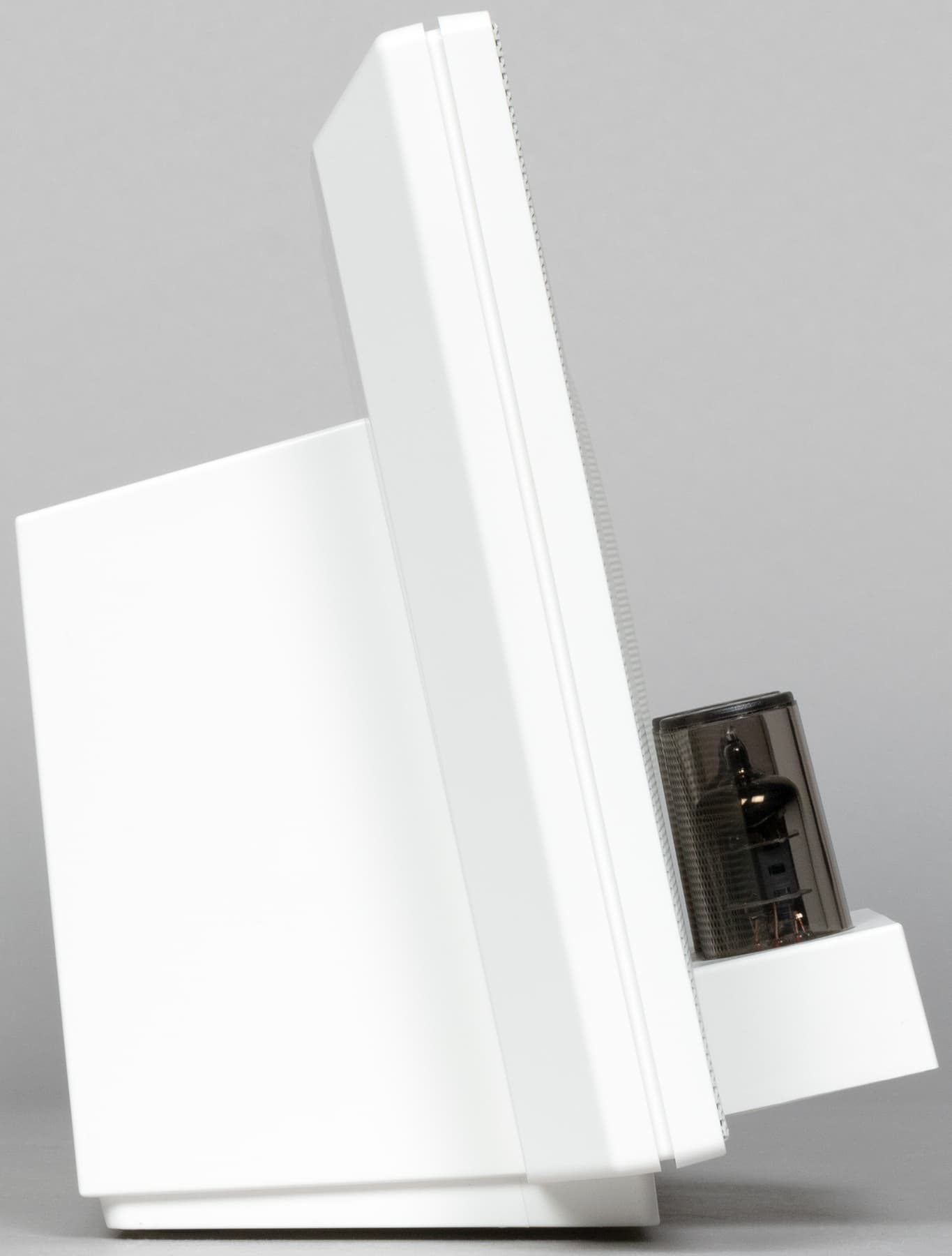 «Все компоненты акустической системы подобраны и согласованы так, чтобы порадовать в первую очередь поклонников «теплого лампового звука» — звучания без раздражающих слух гармоник и высокочастотных шумов. Так, питание акустической системы возложено на вынесенный отдельно для уменьшения наводок мощный трехамперный адаптер, цепи питания построены на надежных полевых MOSFET-транзисторах. Входящий сигнал, обработанный микроконтроллером ЦАПа и цифровым аудиопроцессором, попадает на каскад современных вакуумных ламп, дающих ту самую теплую и обволакивающую уютом окраску звуку в очень широком диапазоне частот. Окончательный выходной сигнал формируется современным усилителем D-класса, высокий КПД которого позволяет не растрачивать подводимую мощность на нагрев воздуха, а реализовывает ее через два среднечастотных и один низкочастотный динамик с низкоинерционными куполами из бумажной массы. Приводы СЧ-головок вооружены быстрыми двухслойными неодимовыми магнитами, НЧ — мощным многослойным ферритовым».