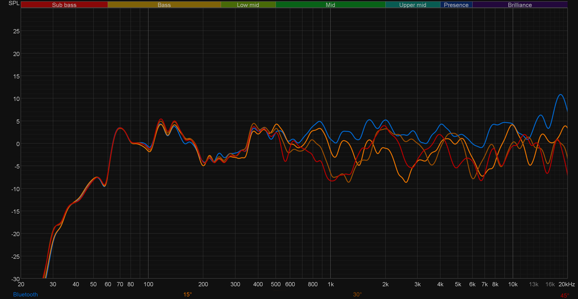 Не меняется. Это было предсказуемо, но нужно было проверить — случается, что изменения всё же есть. Например, если при аналоговом подключении перестает работать встроенный DSP. В данном же случае как ни подключай — результат будет примерно один и тот же. А вот с горизонтальной дисперсией звука всё не слишком хорошо: стоит немного повернуть колонку в сторону, как качество воспроизведения сильно страдает, причем практически во всём диапазоне, начиная с нижней середины.