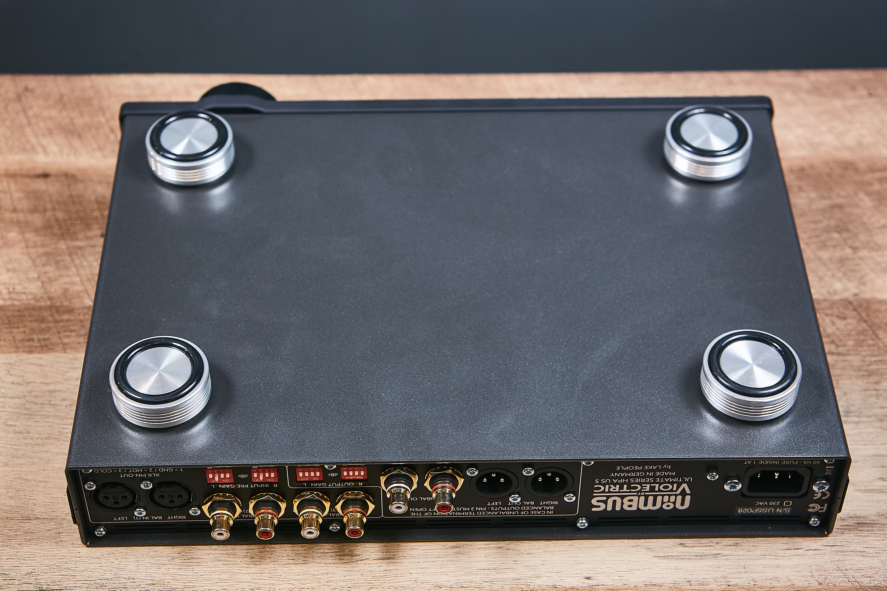 US 5 и US 5 Pro являются преемниками довольно известных и популярных моделей US 4 / US 4+, они получили полностью симметричную схему «двойного моно» с рабочим напряжением питания 50 В от двух тороидальных трансформаторов, емкость их накопительных конденсаторов — 50000 мкФ, выходная мощность — 7000 мВт на 50 омах. Производитель особо подчеркивает, что усилители готовы работать практически с любыми наушниками — в том числе, самыми «тугими» высокоимпедансными планарами, с которыми мы и тестировали устройство. Для адаптации под разные наушники предусмотрена регулировка предварительного усиления в диапазоне от −18 до +24 дБ.