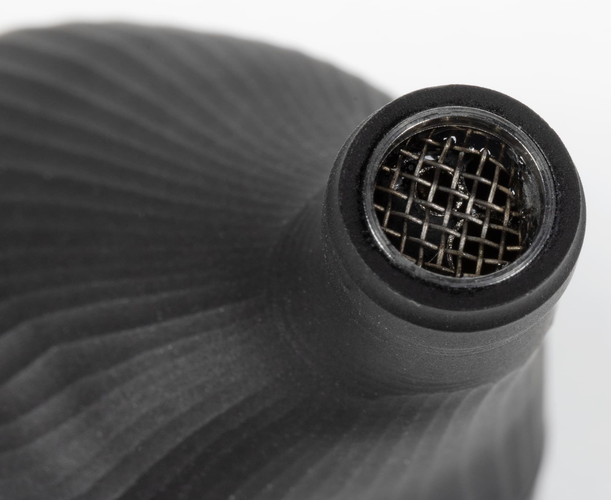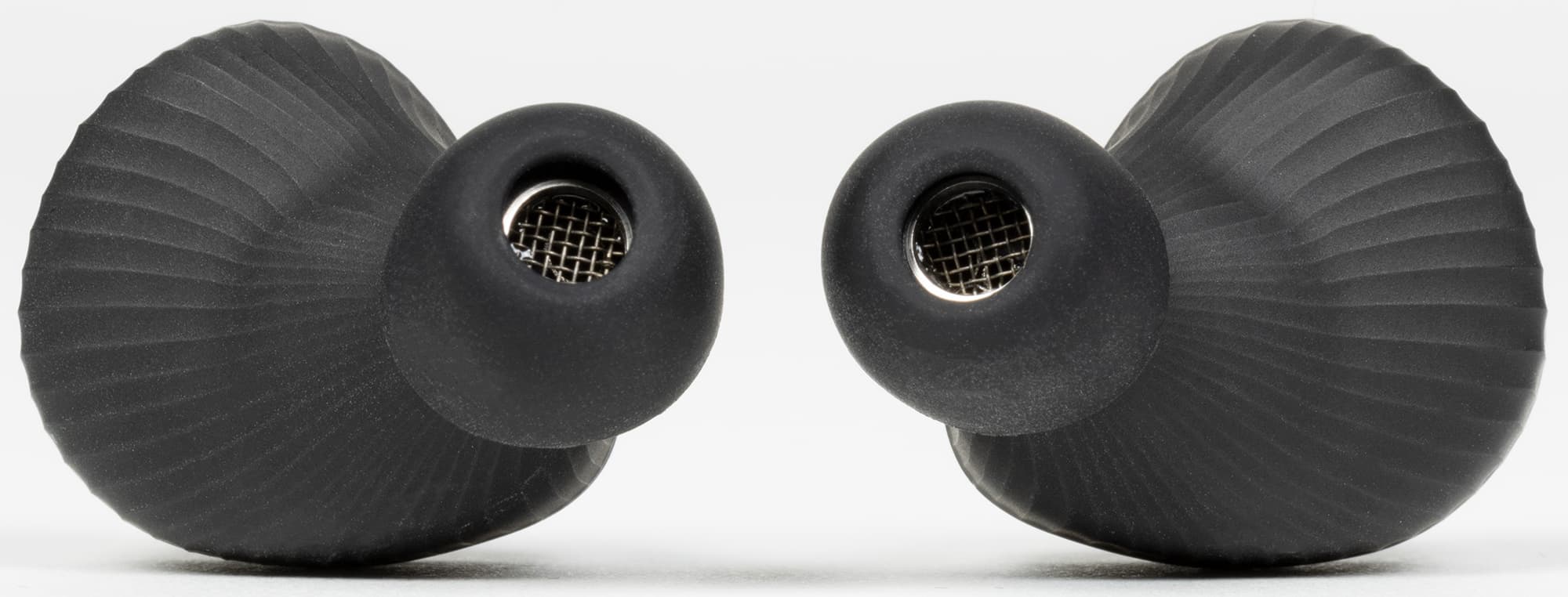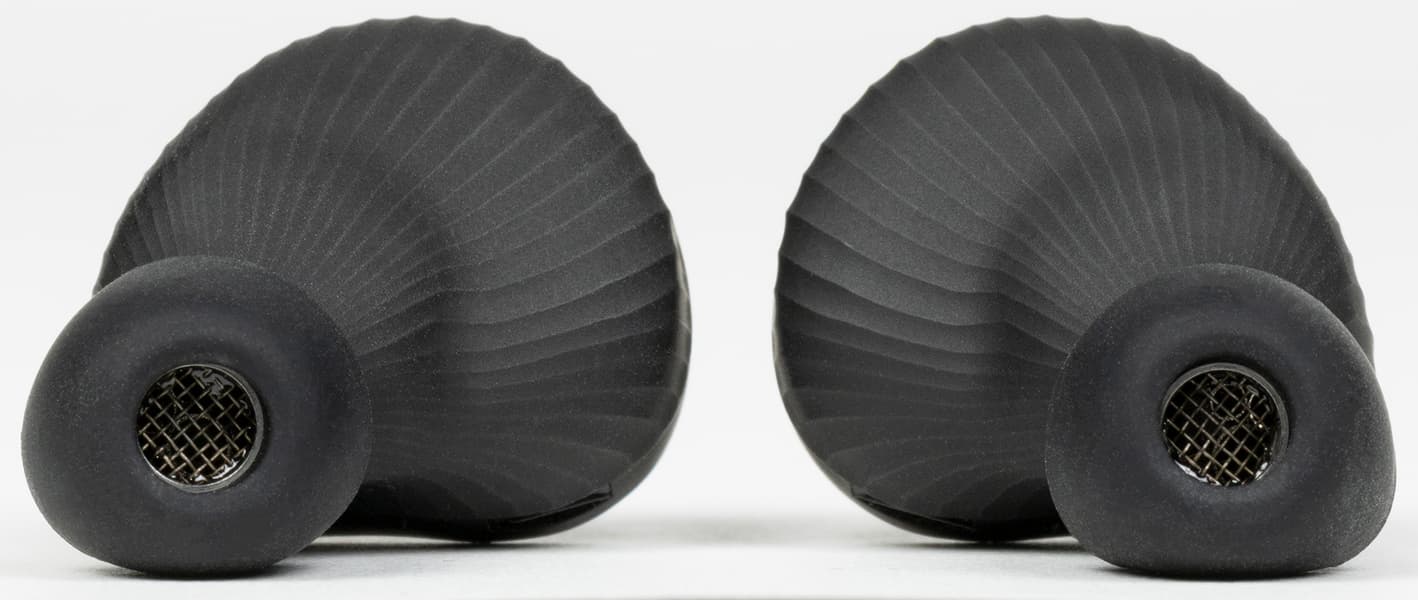 Черное покрытие не просто отлично выглядит, но и выполняет целый ряд важных функций. Во-первых, благодаря ему металлический корпус не ощущается холодным. Во-вторых, его шероховатая текстура вместе с ракушкообразной поверхностью обеспечивает более качественное «сцепление» с кожей внутри ушной раковины.