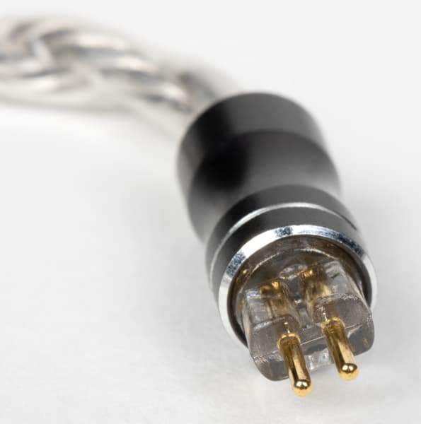 К наушникам кабель подключается с помощью двухконтактного коннектора, основание которого выполнено в общем стиле с остальными элементами кабеля.