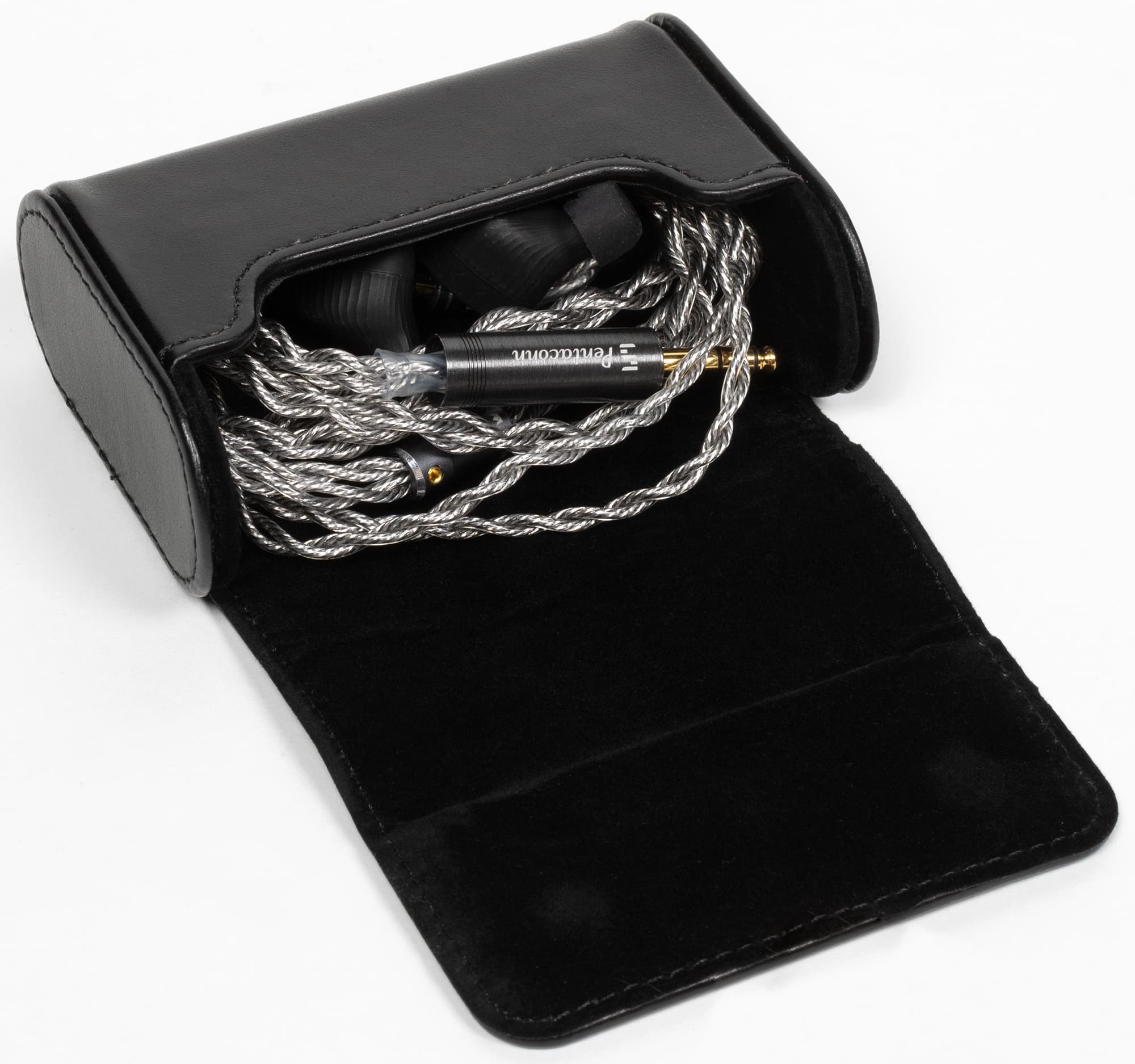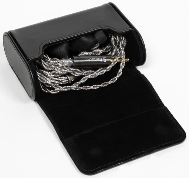 В комплект поставки помимо кейса и самих наушников входят девять пар насадок, кабель, чехол для хранения, тканевый мешочек, два силиконовых браслета, щетка для очистки звуковода и документация.