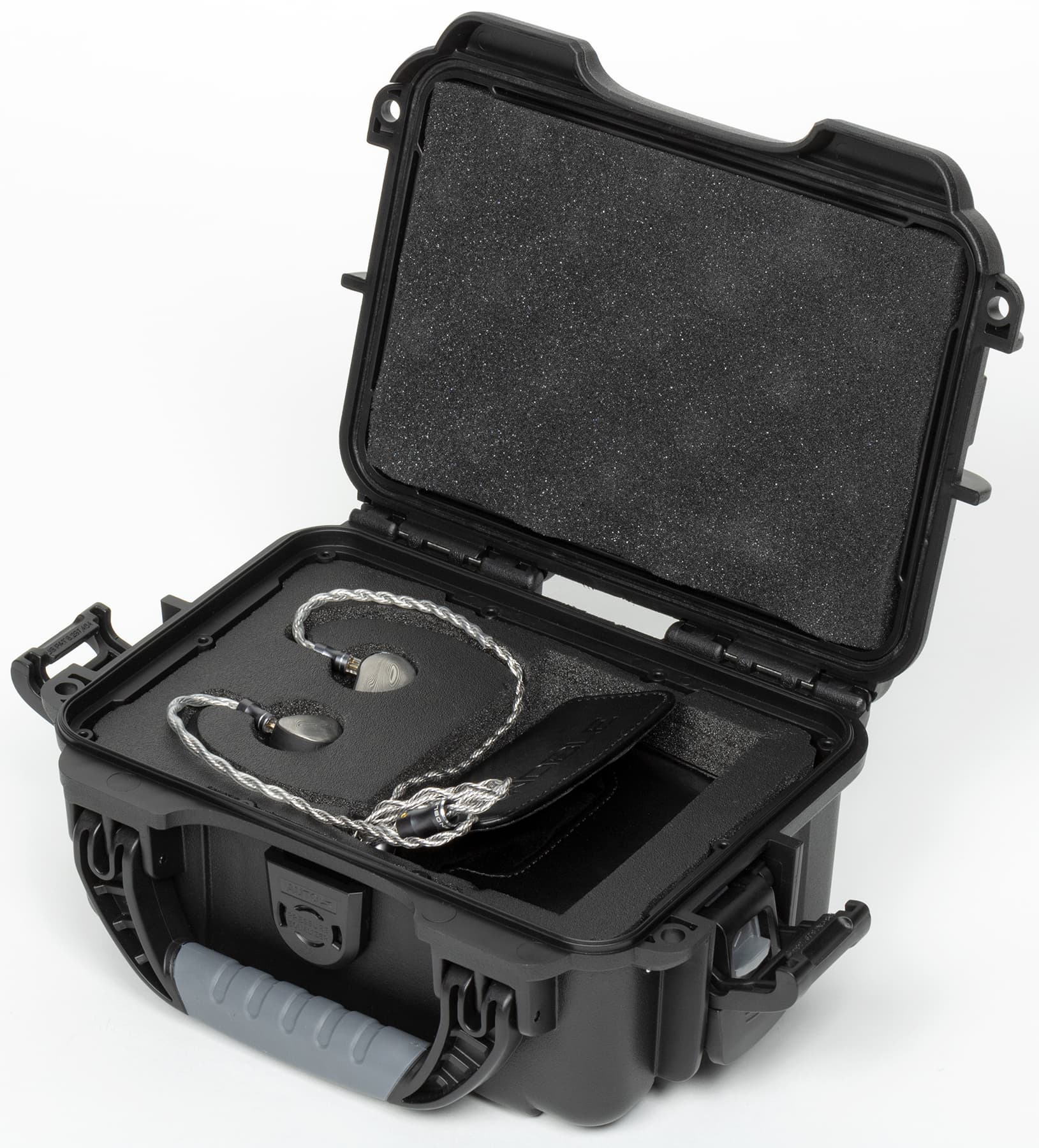 Открыв коробку, мы обнаруживаем еще одну коробку. Вернее, кейс известного производителя из Нидерландов — Nanuk. Компания дает пожизненную гарантию на свою продукцию и имеет ряд собственных интересных разработок — в частности, систему фиксации крышки PowerClaw. В общем, кейс вполне под стать наушникам.