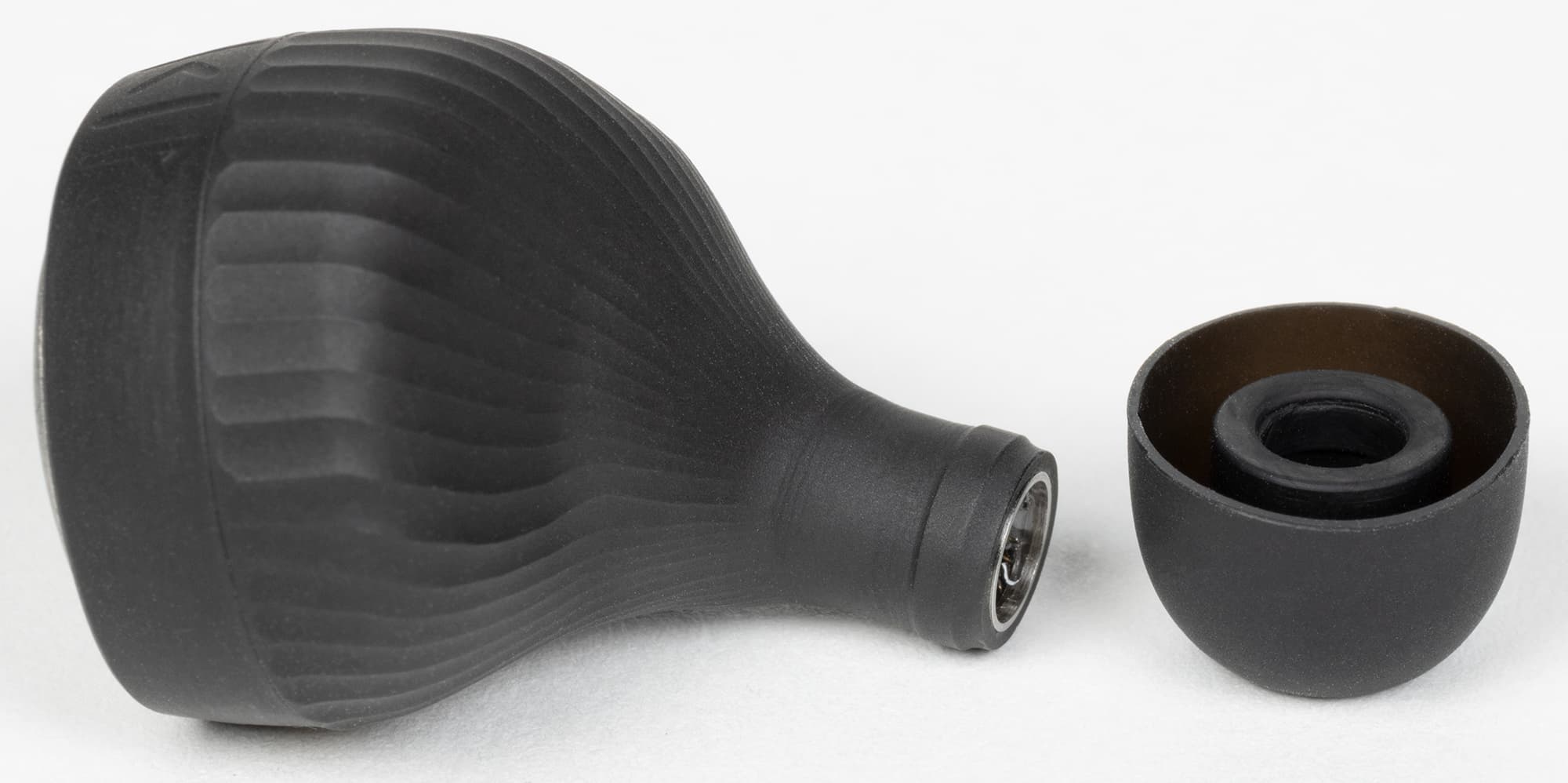 Viking Ragnar поставляется с обширным набором амбушюров. Во-первых, конечно — есть три пары насадок разного размера из приятного на ощупь силикона черного цвета.