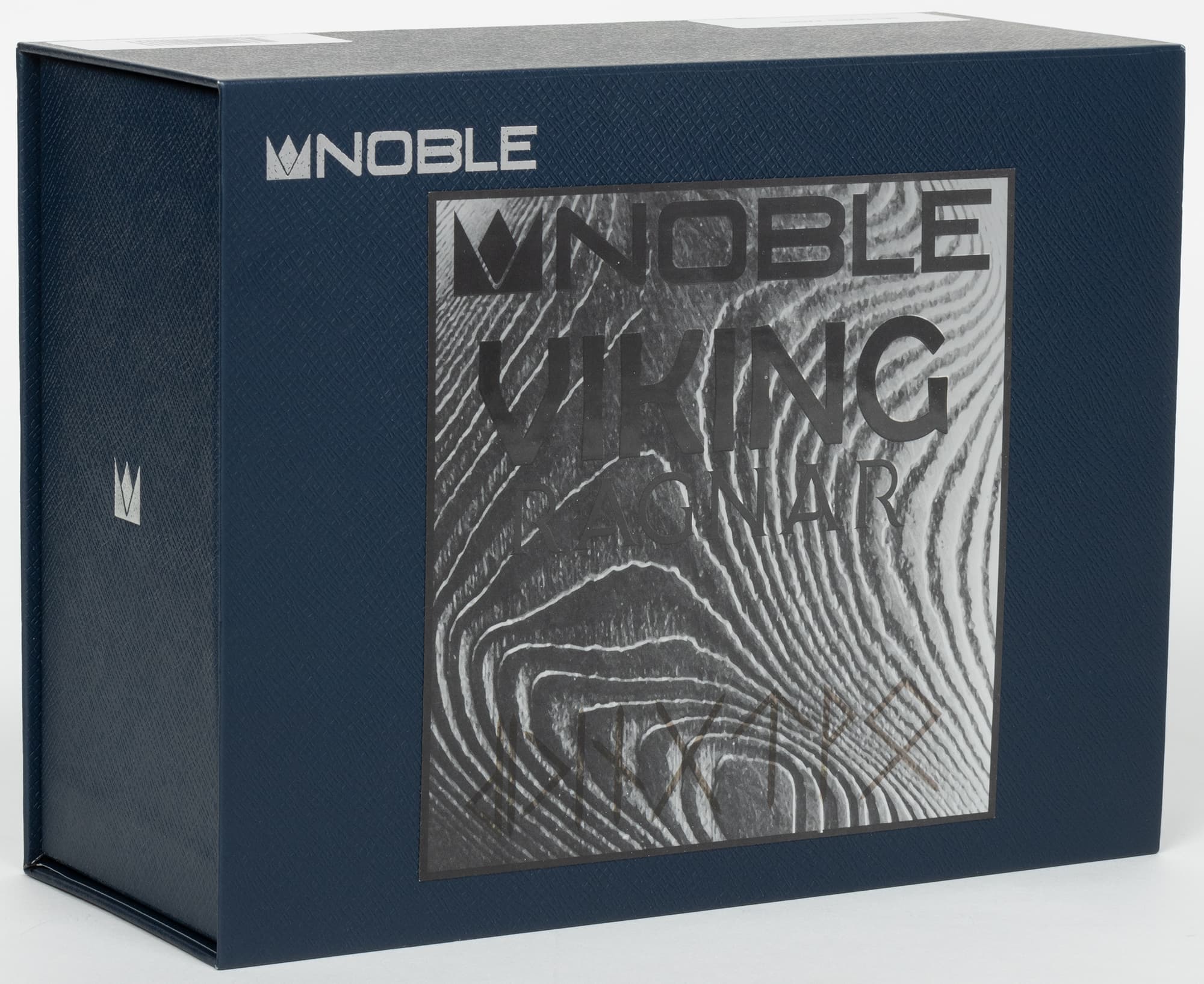 Упакованы Noble Audio Viking Ragnar на славу — как и подобает «ультимативному флагману». Внешняя коробка выполнена из плотного синего картона, крупная наклейка на откидной крышке имитирует текстуру фейсплейтов.