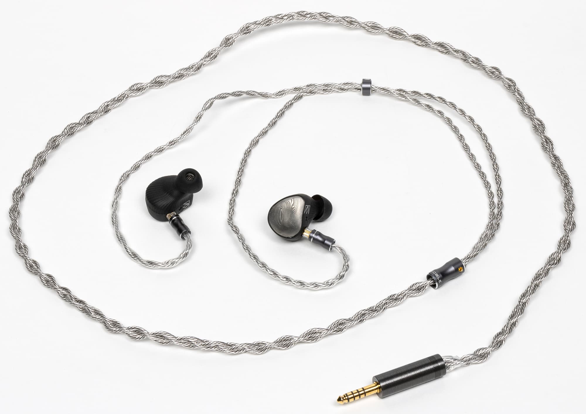 Кабель, как уже упоминалось выше — отдельная достопримечательность. Сплетен он из 4 проводников по 113 жил в каждом, которые сделаны из графена, монокристаллического серебра и сплава серебра с медью — в общем, соответствует самым высоким аудиофильским стандартам. Споры вокруг вопроса о влиянии материала кабелей на звучание наушников вряд ли когда-нибудь утихнут. Как минимум, это просто красиво.