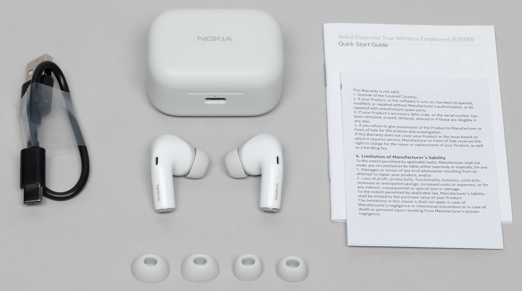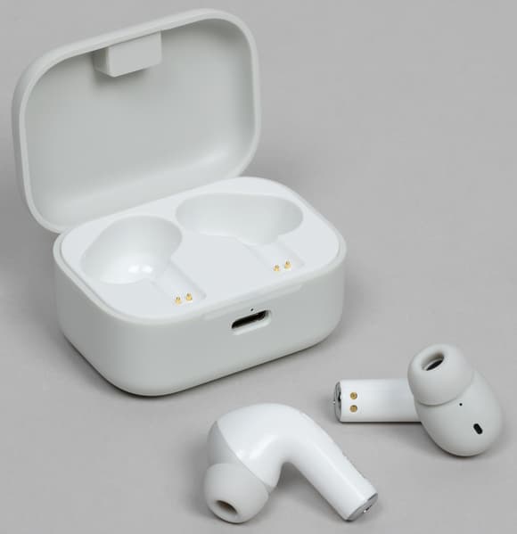 В комплект входят сами наушники, кейс для их зарядки и переноски, документация, сменные силиконовые насадки и зарядный кабель USB — USB Type C длиной 20 см.