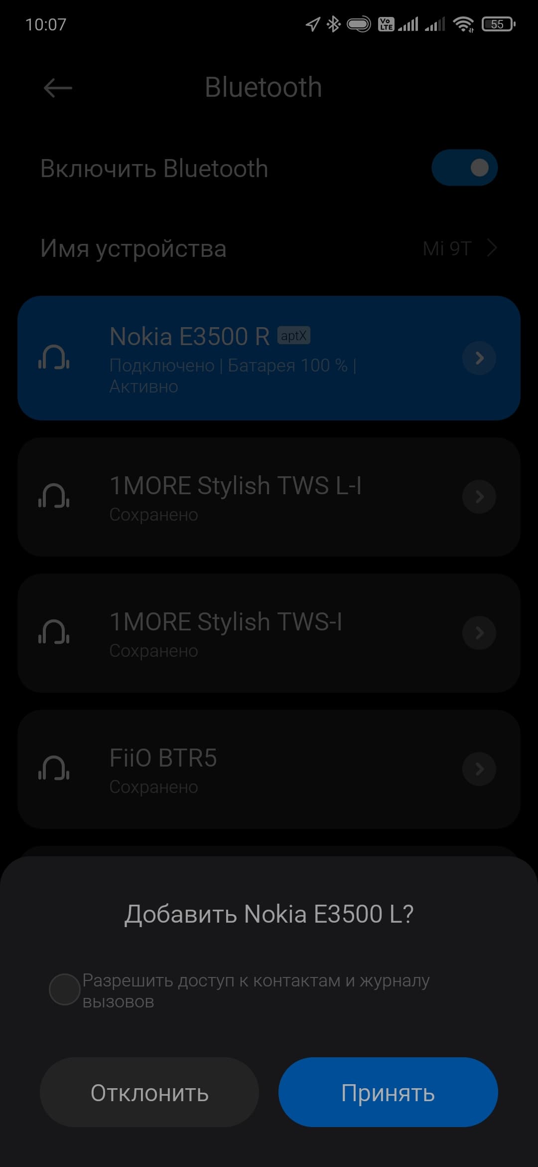 В документации Nokia E3500 почему-то указана поддержка только кодеков SBC и aptX, однако AAC тоже присутствует, у владельцев устройств Apple нет причин отказываться от использования этой гарнитуры.