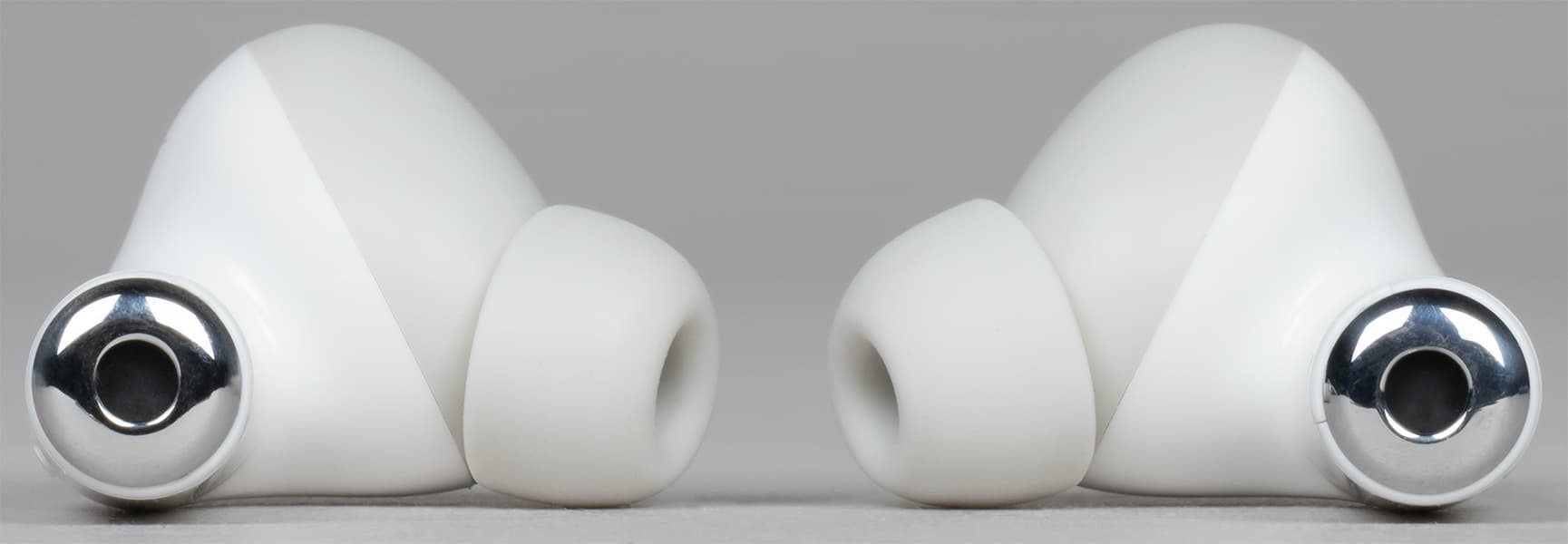 При взгляде сбоку заметно, что наушники довольно компактные, однако они немного больше, чем AirPods Pro, сравнения с которыми все-таки неизбежны.