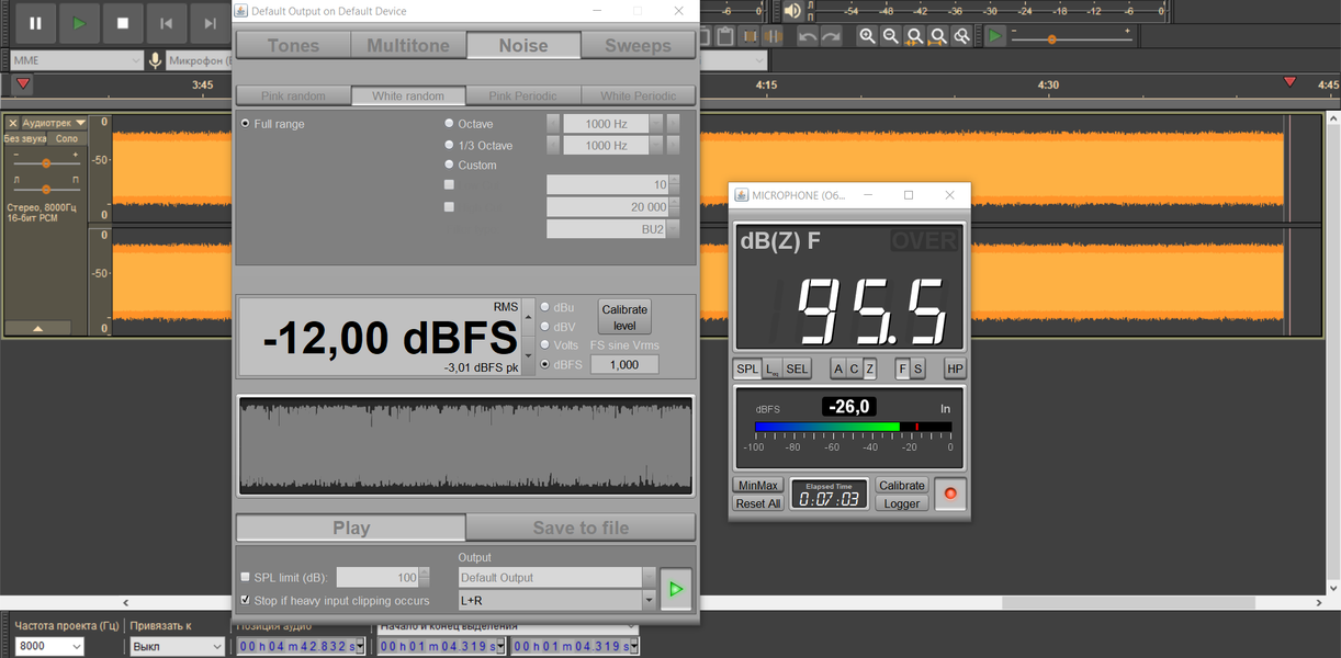 Производитель анонсирует до 7 часов звучания наушников от одного заряда аккумуляторов. В наших тестах они проработали поменьше, но ненамного. Вкратце напомним нашу методику тестирования автономности беспроводных наушников. Безопасным уровнем звукового давления при прослушивании музыки в наушниках считается 75 дБ, но на практике большинство слушателей предпочитает уровень в районе 90-100 дБ. Мы транслируем в наушники белый шум, фиксируя уровень SPL в районе 95 дБ, сразу после старта воспроизведения запускаем запись сигнала с измерительного стенда — по длине получившегося трека легко понять, сколько проработал каждый из наушников.