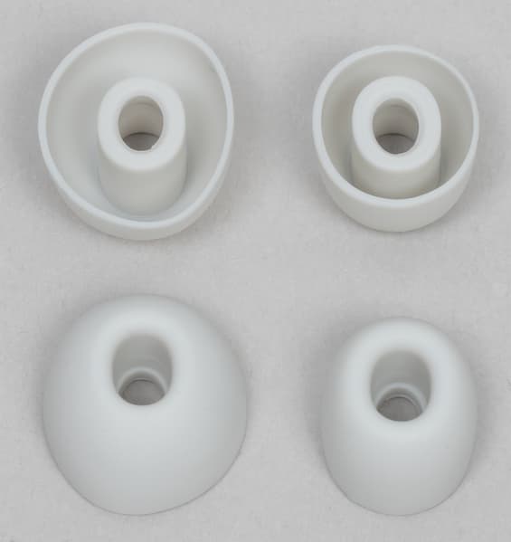 Дефицита низкочастотного диапазона, как мы увидим в соответствующей главе тестирования, тоже не наблюдается — со стенками ушного канала силиконовые насадки контактируют достаточно плотно. Соответственно, и пассивная звукоизоляция тоже находится на хорошем среднем уровне. Ну и, возвращаясь к занятиям спортом и прочим активностям, надо отдельно упомянуть защиту IPX5. Гарнитура должна выдерживать потоки воды с любых направлений, вот только отверстия на внешней стороне корпуса заставляют в этом слегка сомневаться. Тем не менее, пробежку под дождем она наверняка может пережить без последствий.