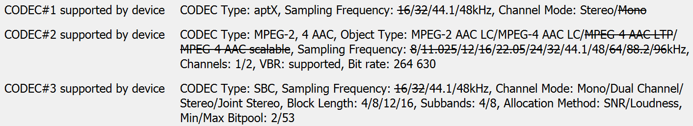 При этом в памяти сохраняются два сопряженных источника, к каждому из которых возможно автоматическое подключение. Это было проверено переключением между смартфоном под управлением Android и ПК с Windows 10 — с обоими устройствами гарнитура корректно соединялась и работала. Параллельно с помощью утилиты Bluetooth Tweaker был получен список поддерживаемых кодеков и их режимов.