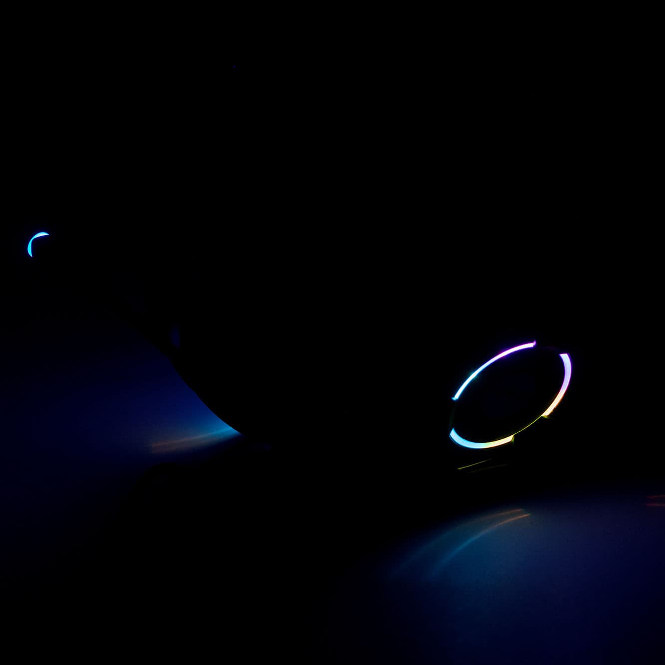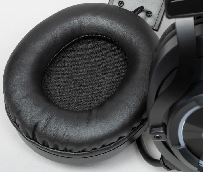 Подсветка выглядит симпатично. На чашках она динамическая, но цвета меняются плавно и приятно для глаз. Это важно, так как отключить подсветку нельзя, иногда это не очень удобно, но в целом — вполне терпимо, если вспомнить, что гарнитура недорогая. Да и есть немало пользователей, которые подсветку вообще не отключают.