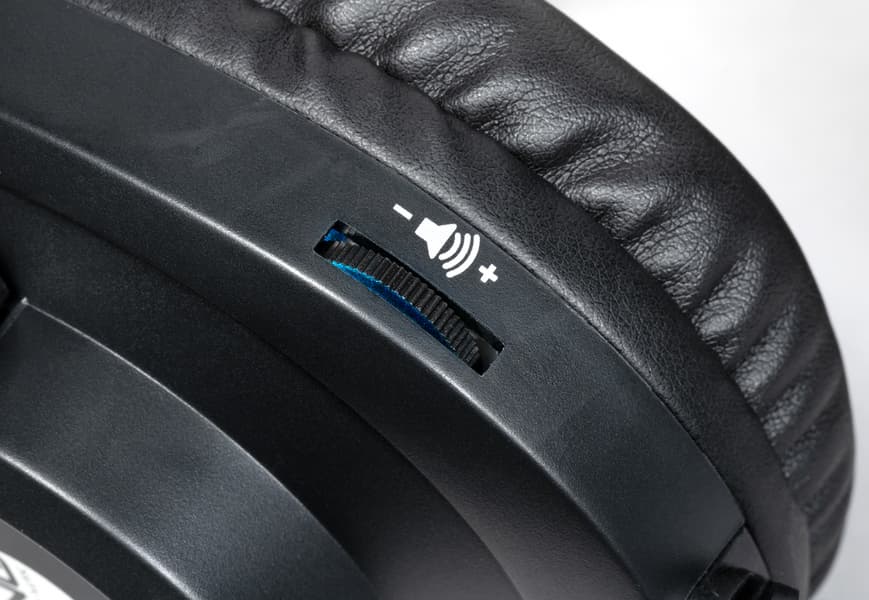 Громкость изменяется с помощью колесика-потенциометра с приятным мягким ходом на левой чашке. Регулировка аналоговая, соответственно, громкость в системе и на наушниках изменяется раздельно — проще выставить в Windows максимальное значение, после чего пользоваться регулятором на гарнитуре.