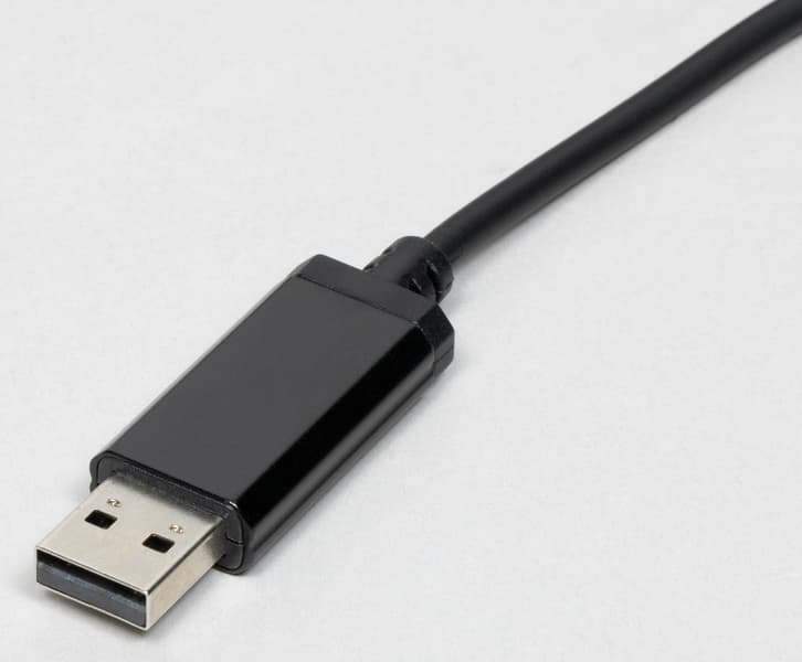 Кабель имеет длину 2,1 метра — хватит, чтобы подключить GMNG HS-L570G даже к стоящему где-нибудь под столом системному блоку. Выглядит он вполне надежным, имеет диаметр 4 мм, но при этом достаточно гибок, чтобы не вызывать дискомфорта при использовании гарнитуры. На конце размещен сравнительно массивный коннектор USB-A.