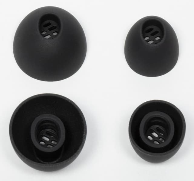 Силиконовые насадки удерживаются на своем месте с помощью заметных выступов на кончиках звуководов. Снять и поставить их обратно чуть сложновато, но вполне возможно.