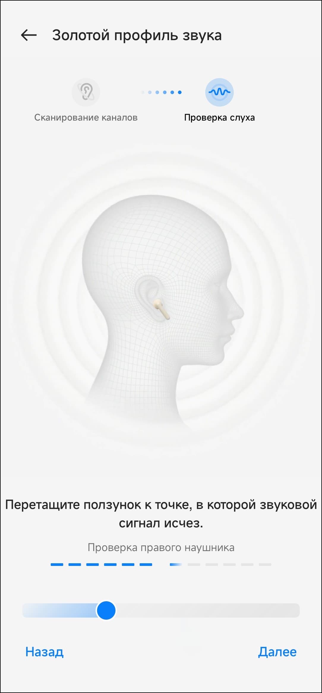 Далее следует еще одна опция подстройки звука OnePlus Buds Pro 2R под пользователя — создание так называемого «золотого профиля звука». После запуска система просит пару-тройку разрешений, потом предлагает подготовиться к проверке слуха.