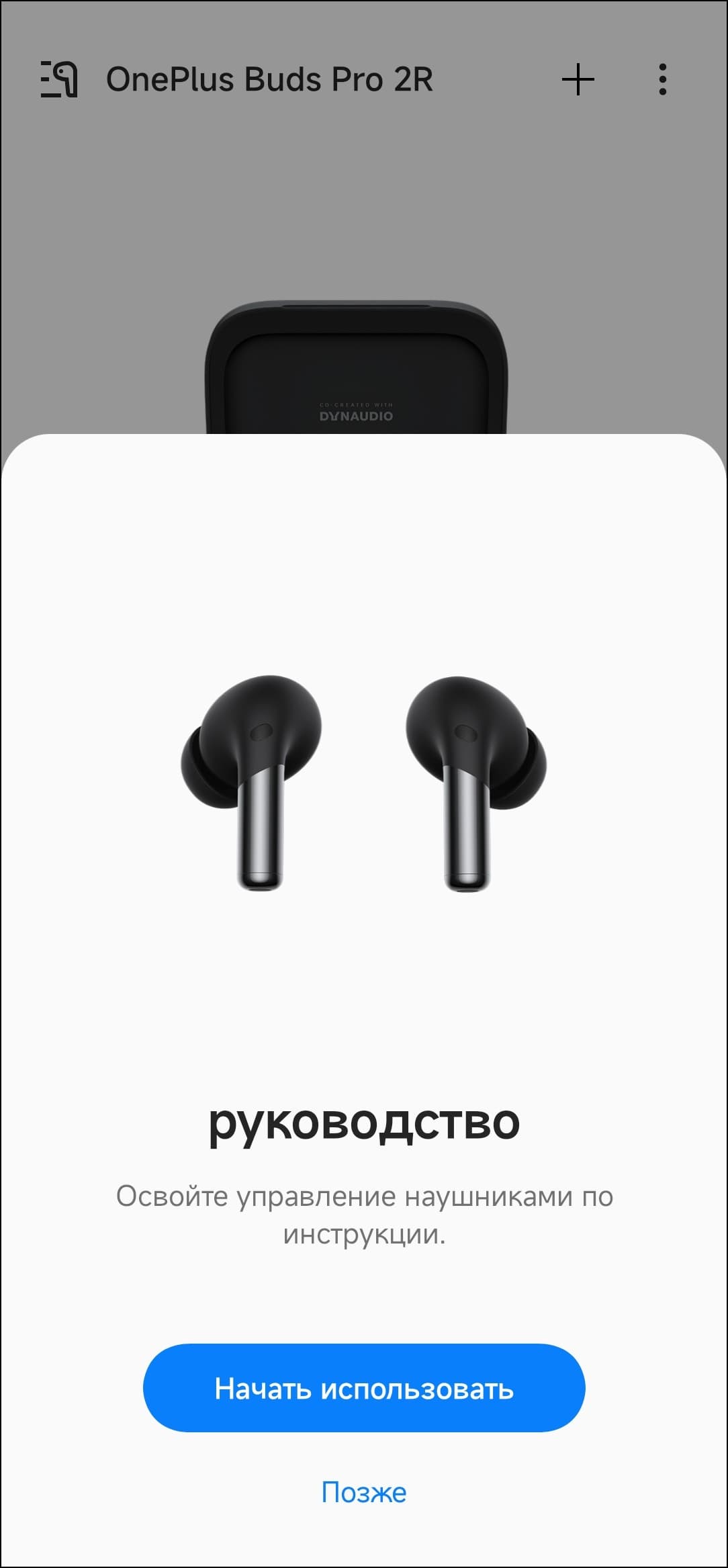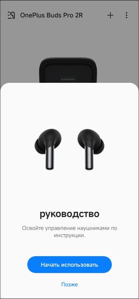 При использовании смартфонов OnePlus управление наушниками осуществляется штатными средствами, обладателям же других устройств рекомендуется установить приложение HeyMelody, которое позволит получить доступ к настройкам Buds Pro 2, без которых полноценное использование гарнитуры невозможно. После установки ПО запрашивает ряд разрешений, сканирует окружение и без проблем находит подключенное заранее устройство. Далее предлагается ознакомиться с небольшим руководством и попробовать в работе систему управления.