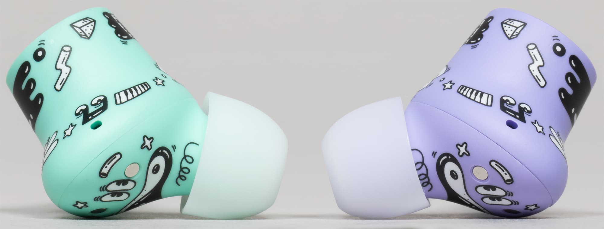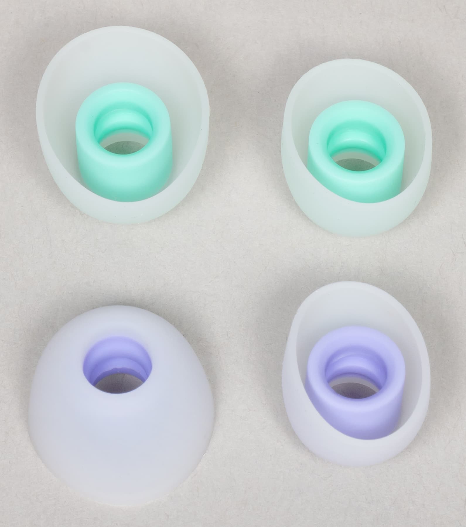 Силиконовые насадки сделаны вполне качественно и имеют стандартную форму — подобрать им замену труда не составит. Другой вопрос, что делать это вряд ли захочется из-за внешнего вида: сердечники амбушюров окрашены в те же два цвета, которые используются в дизайне всех частей гарнитуры. При этом каждый в свой.