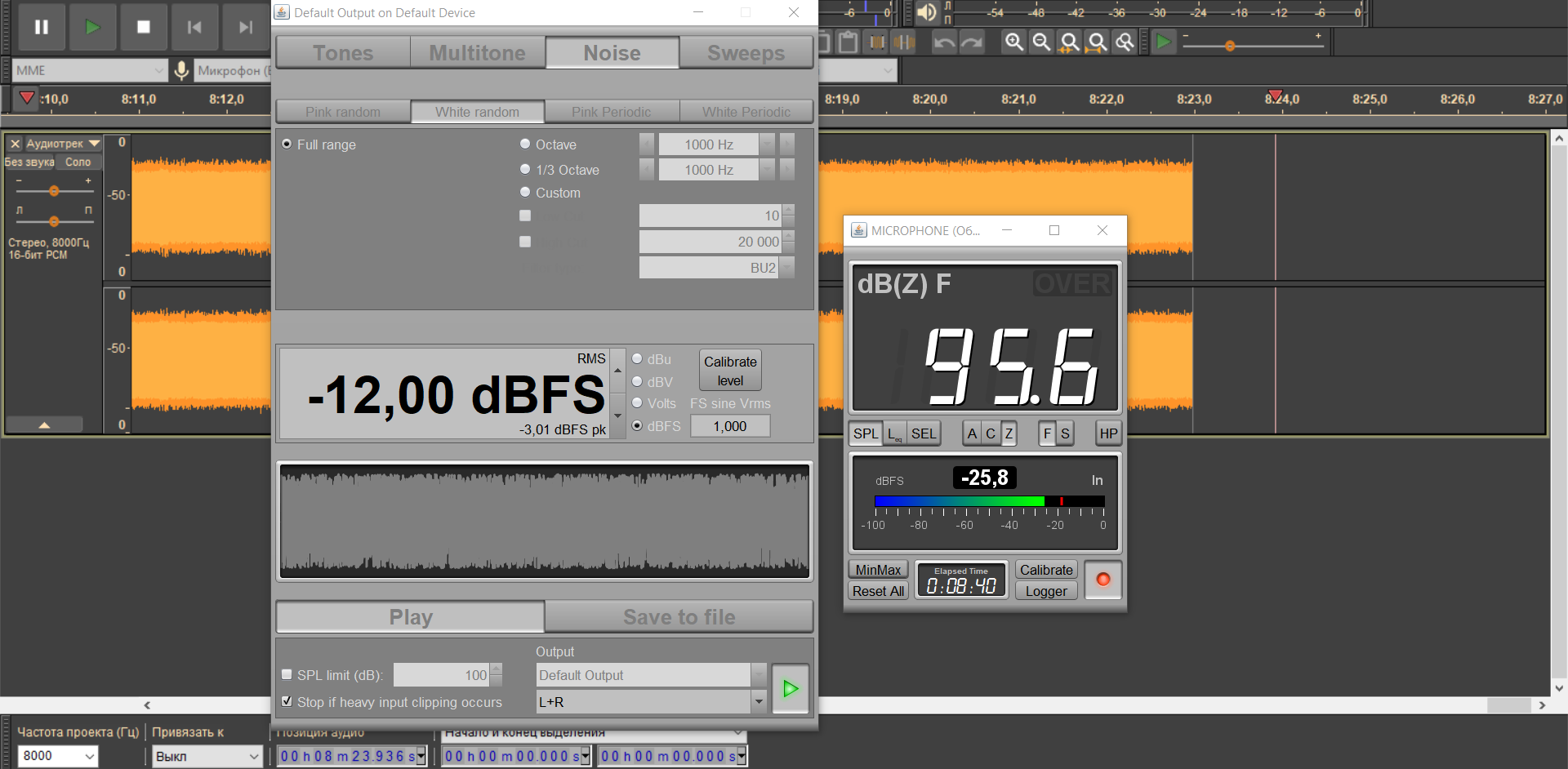 Производитель обещает до 5 часов работы наушников от одного заряда аккумулятора. Но здесь все зависит от условий эксплуатации, конечно. Безопасным уровнем звукового давления при прослушивании музыки в наушниках считается 75 дБ, но на практике большинство слушателей предпочитает уровень в районе 90-100 дБ. Мы транслируем в наушники белый шум, фиксируя уровень SPL в районе 95 дБ, сразу после старта воспроизведения запускаем запись сигнала с измерительного стенда — по длине получившегося трека легко понять, сколько проработал каждый из наушников.