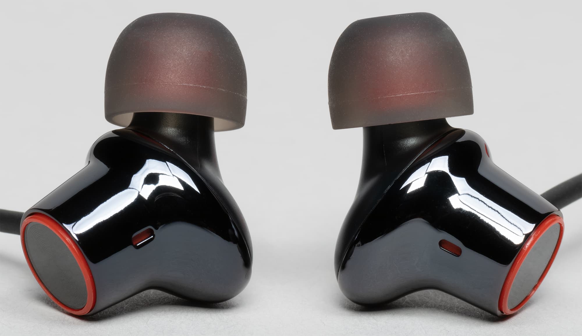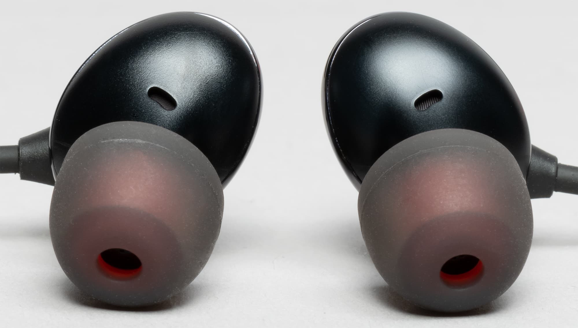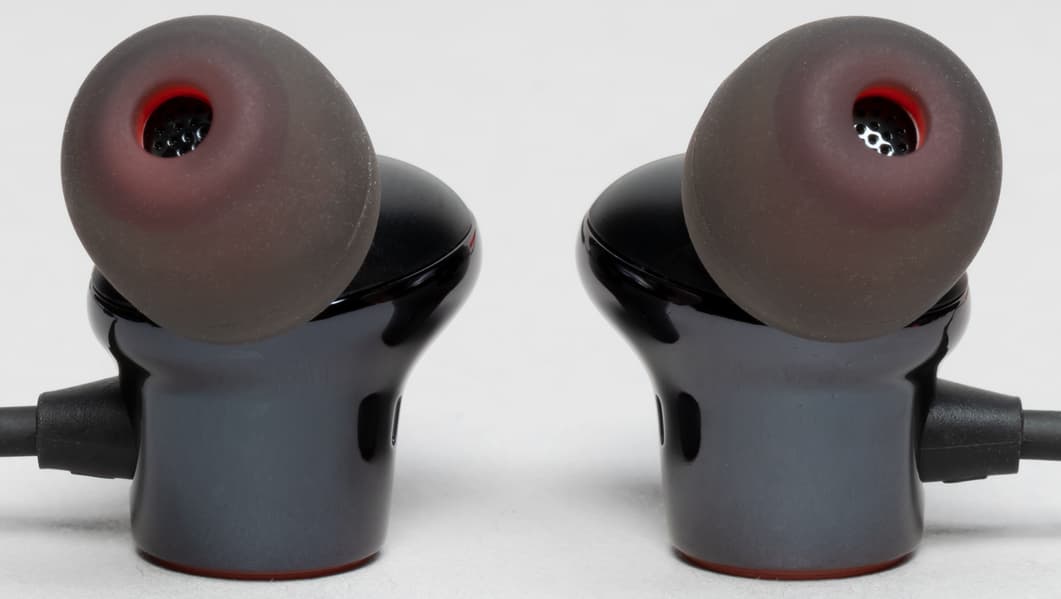 Сменные амбушюры с красным сердечником выглядят оригинально, но при этом без проблем могут быть заменены на стандартные модели.