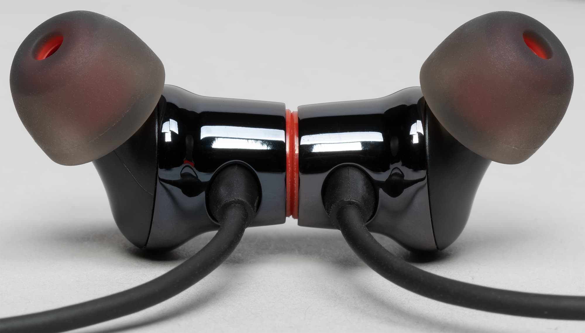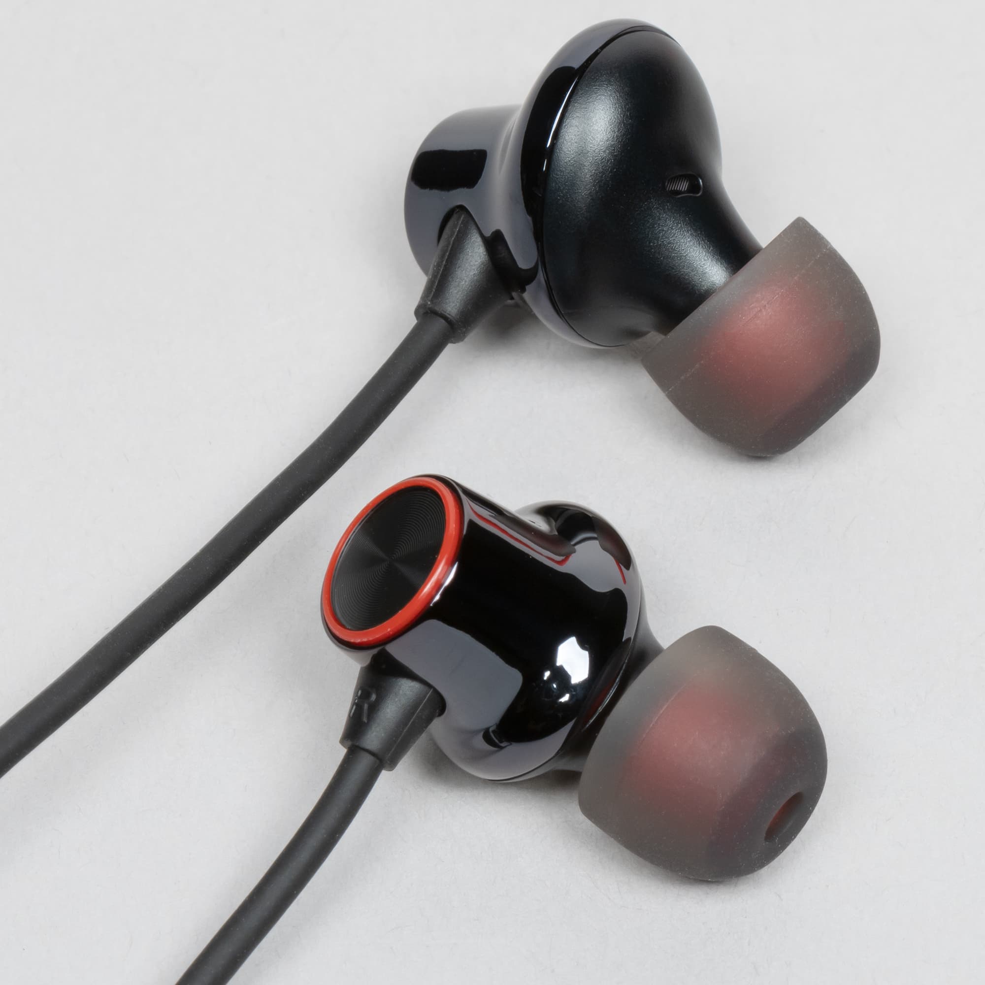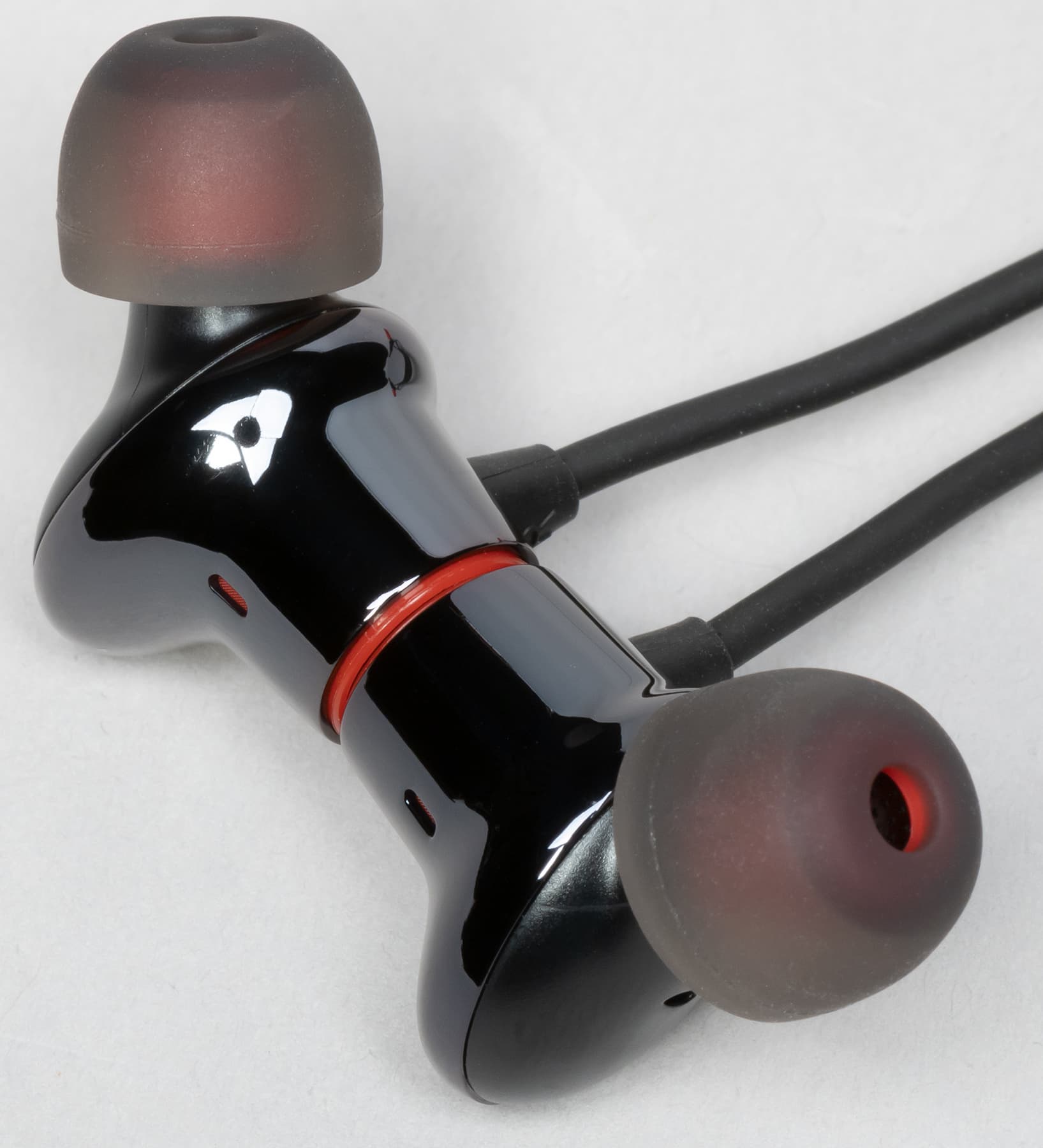 Сменные амбушюры с красным сердечником выглядят оригинально, но при этом без проблем могут быть заменены на стандартные модели.
